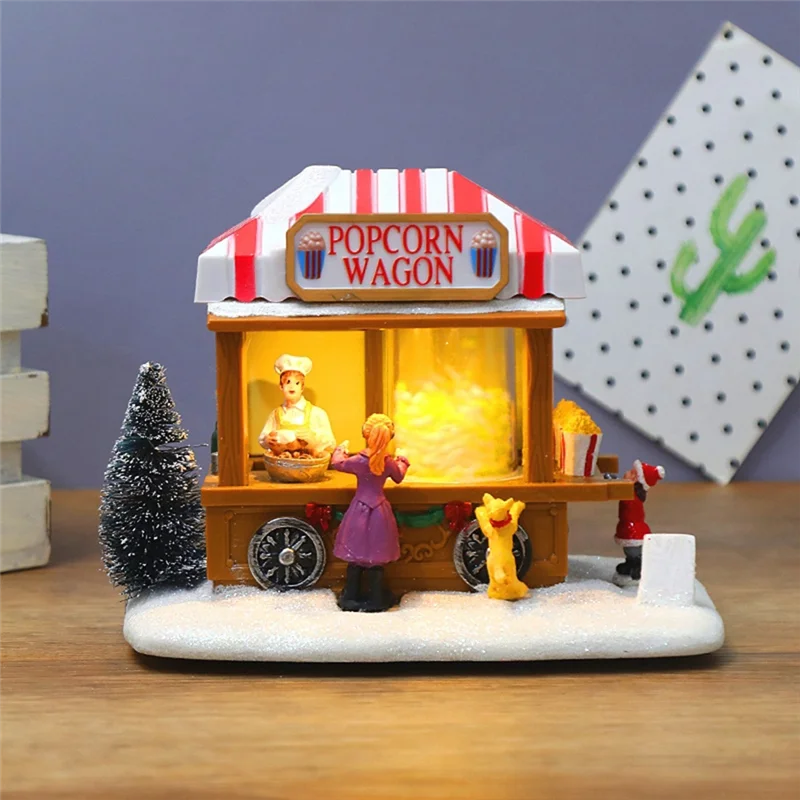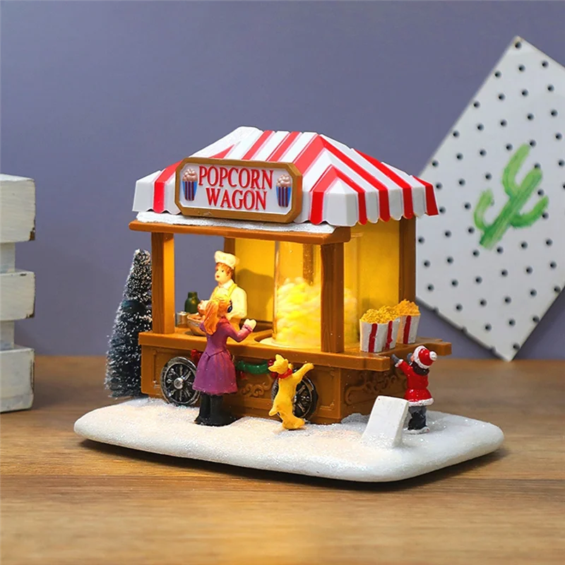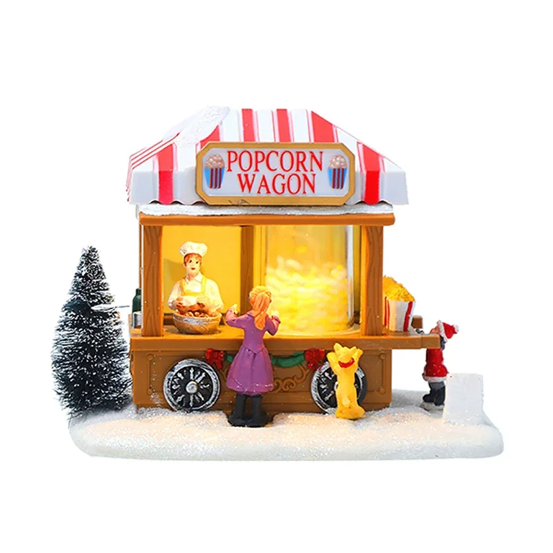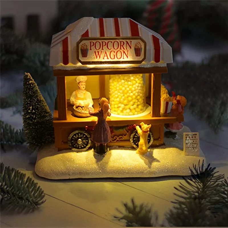 LED Lighted Christmas Village Houses Multicolored Christmas Vacation Village with Music Christmas Village Popcorn House