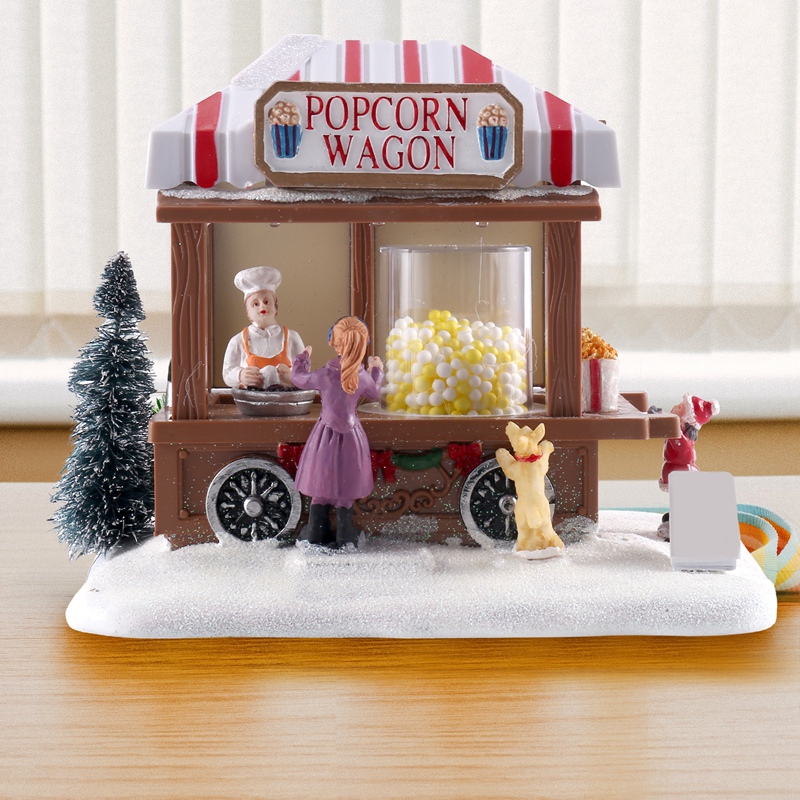 LED Lighted Christmas Village Houses Multicolored Christmas Vacation Village with Music Christmas Village Popcorn House