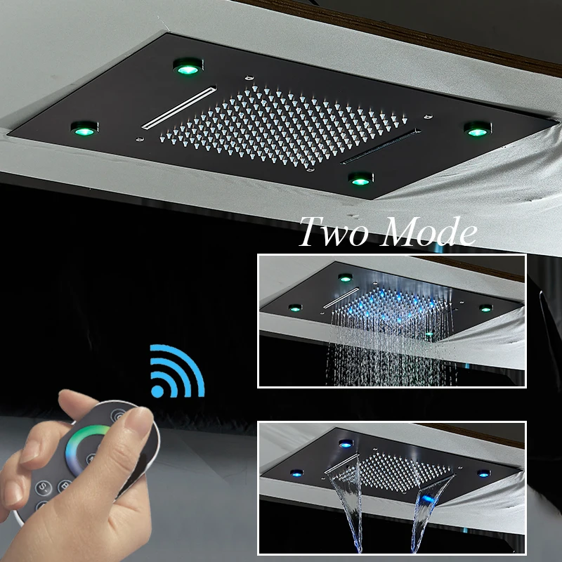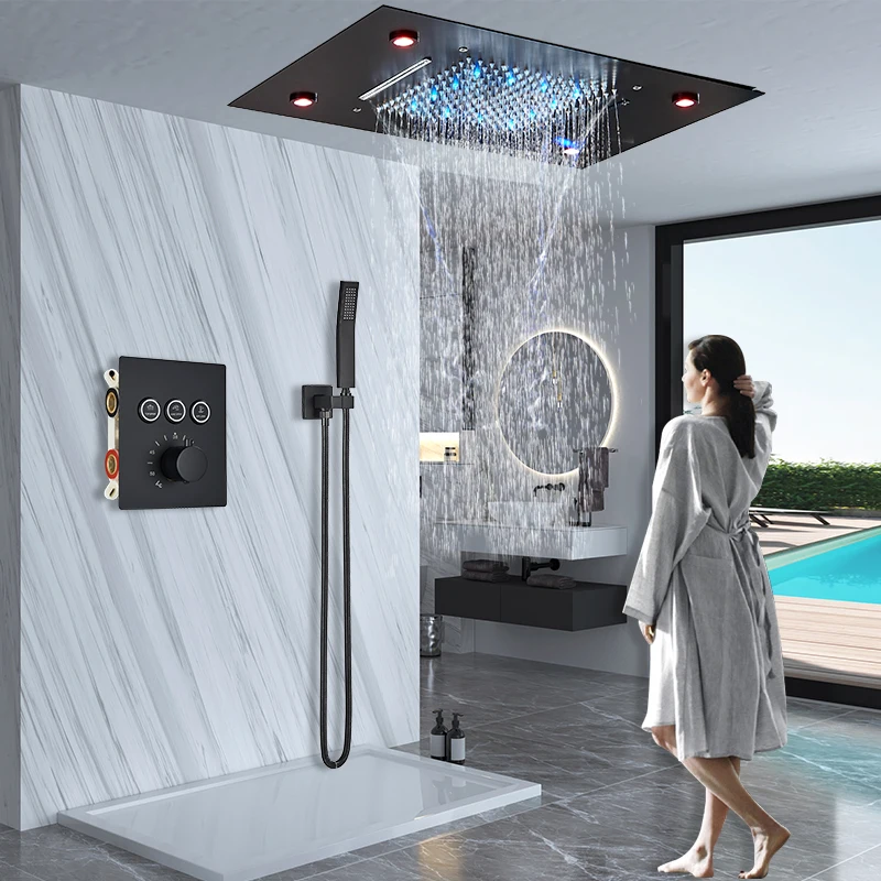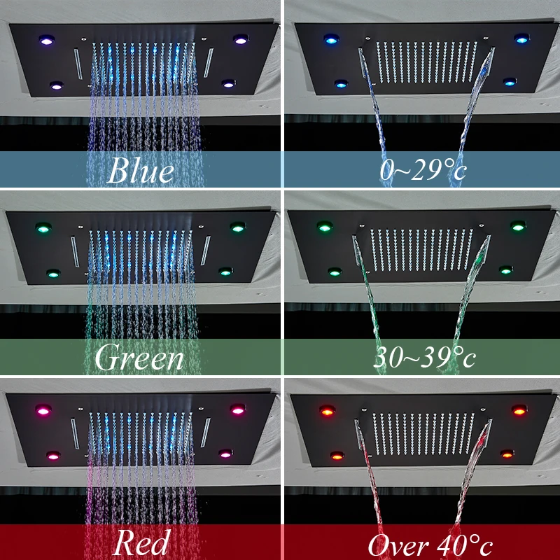 LED Shower Faucet Set Oversize Ceiling Mounted Mixer Taps Brass Waterfall Tub Spout Concealed Shower Systems For Bathroom Faucet