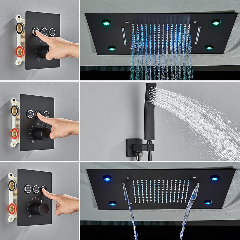 LED Shower Faucet Set Oversize Ceiling Mounted Mixer Taps Brass Waterfall Tub Spout Concealed Shower Systems For Bathroom Faucet