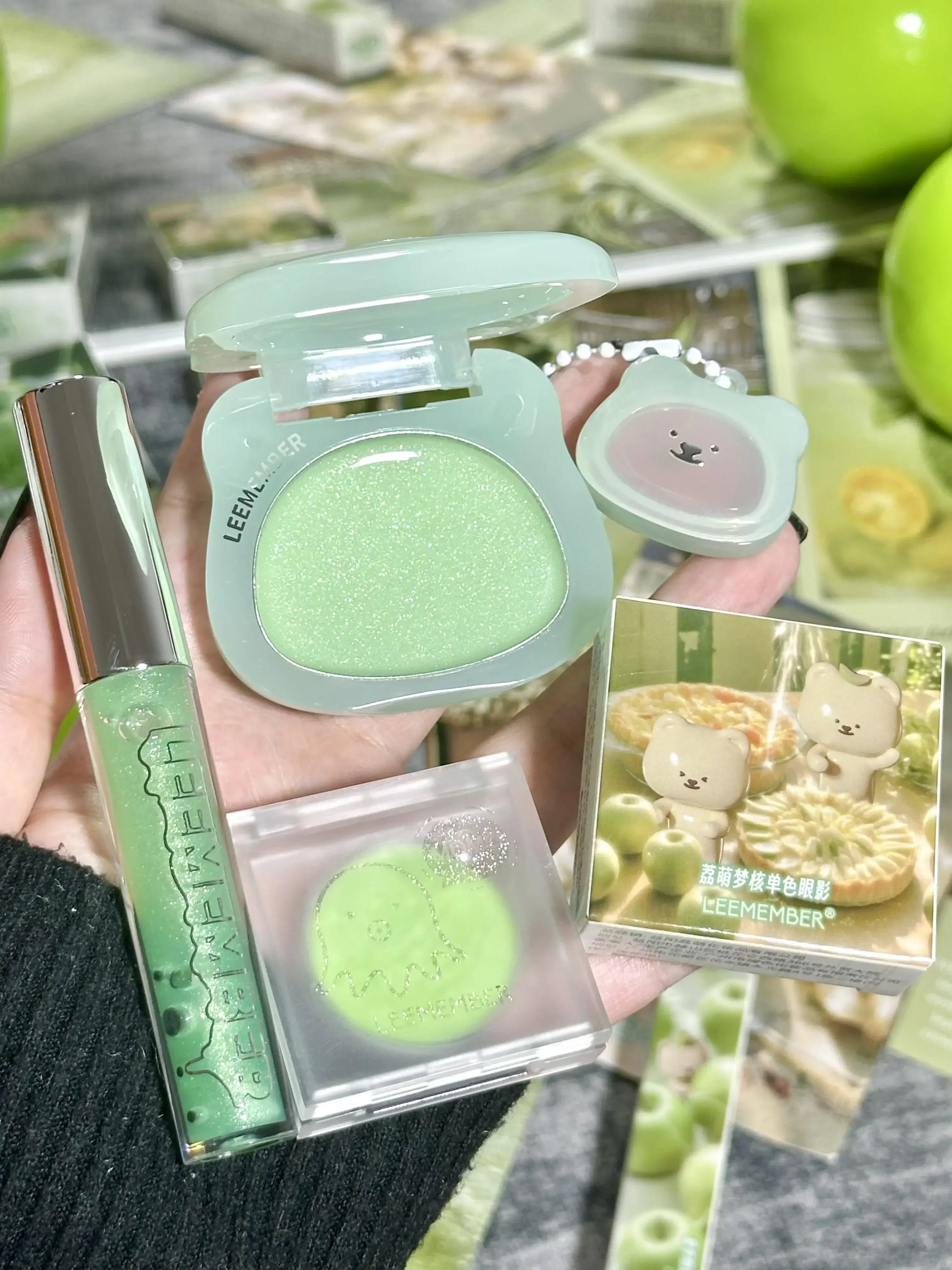 2 reviews for LEEMEMBER Summer Green Apple Water Light Blusher Cream Monochrome Eye Shadow Lip Gloss Highlight Face Makeup Kit