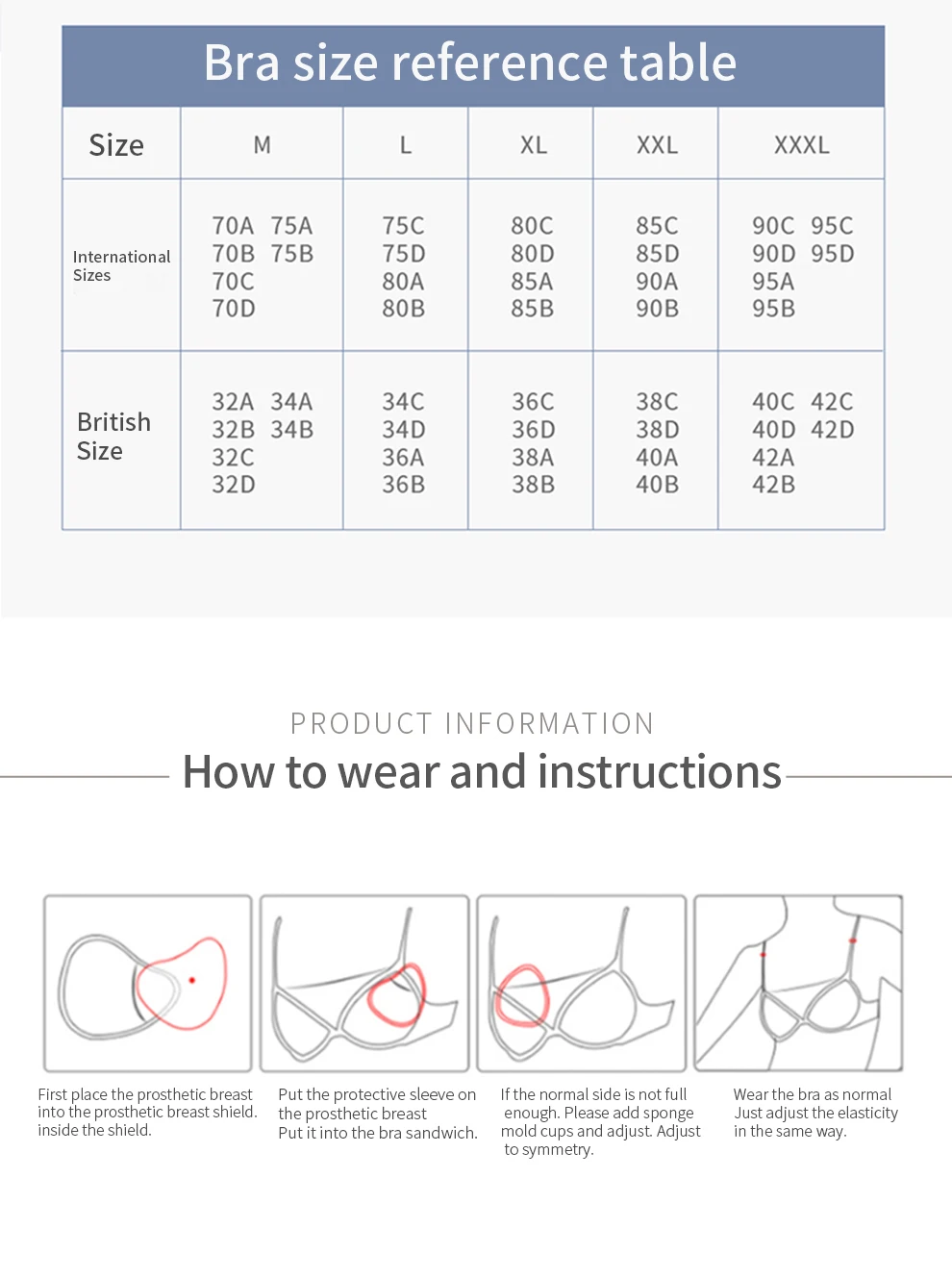 LERVANLA C078 Women Mastectomy Daily Bra Silicone Breast Prosthesis Filling Artificial Prosthesis Without Steel Ring