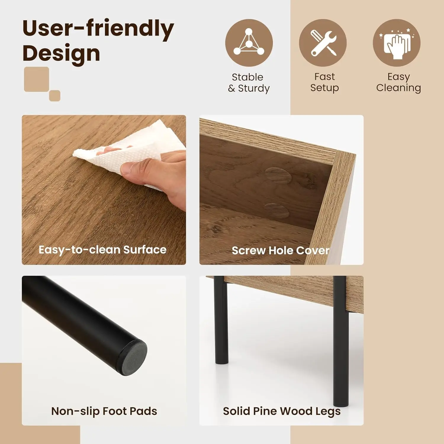 【User-friendly Details】 No need to move the accent table when you want to clean the floor. The off-ground design leaves ample room for a vacuum robot for easy cleaning. Besides, the metal legs are fitted with protective foot pads to avoid scratching floor.
