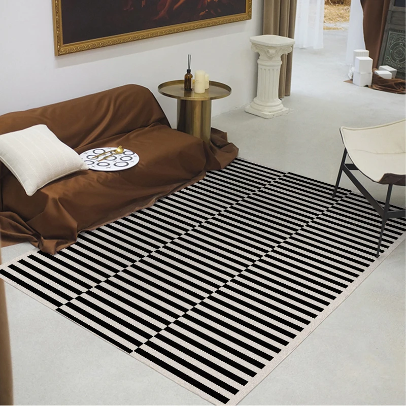 Light Luxury Rugs for Bedroom Black White Plaid Living Room Decoration Carpet Fluffy Soft Study Rug Home Thicken Plush Floor Mat
