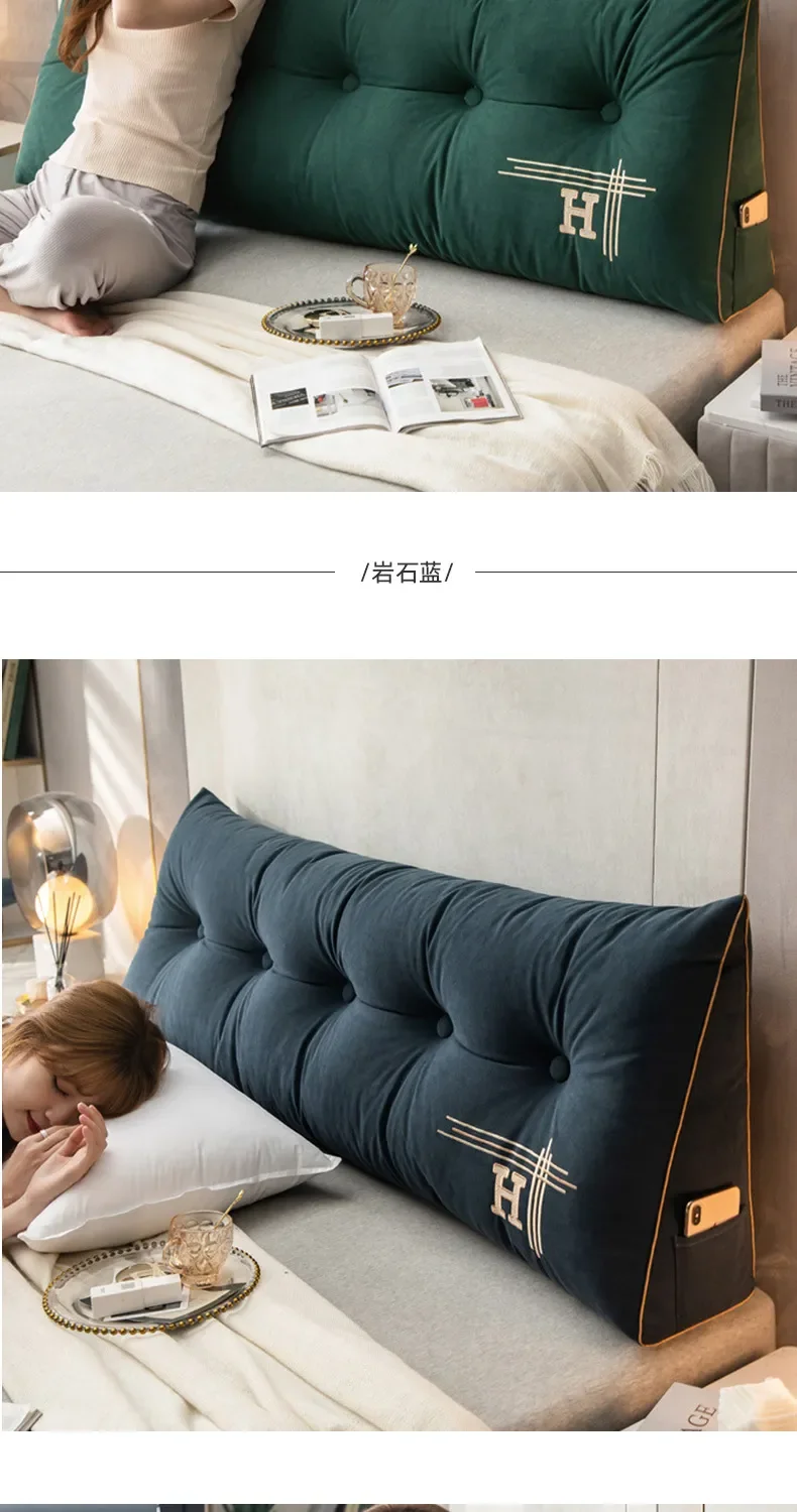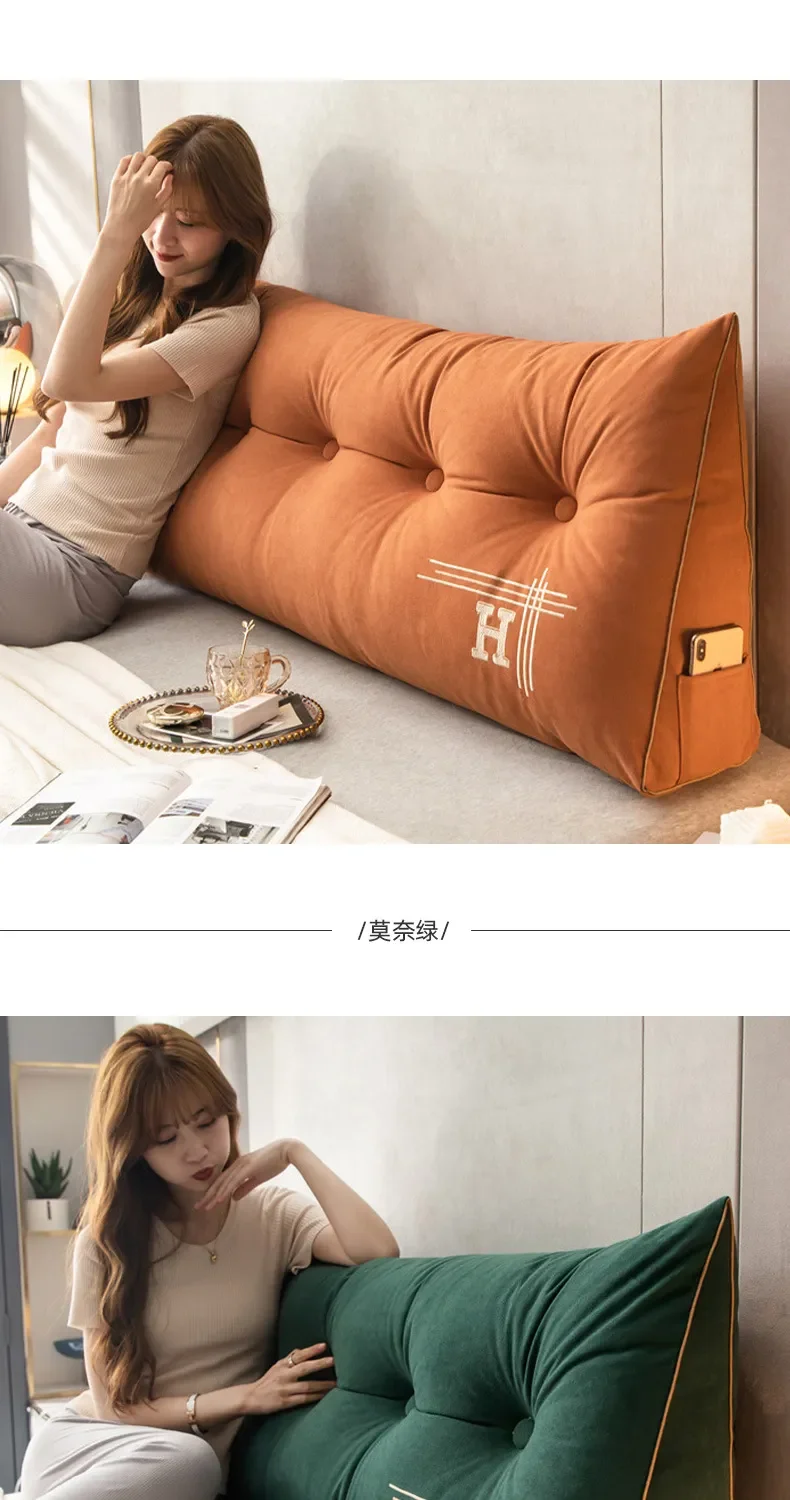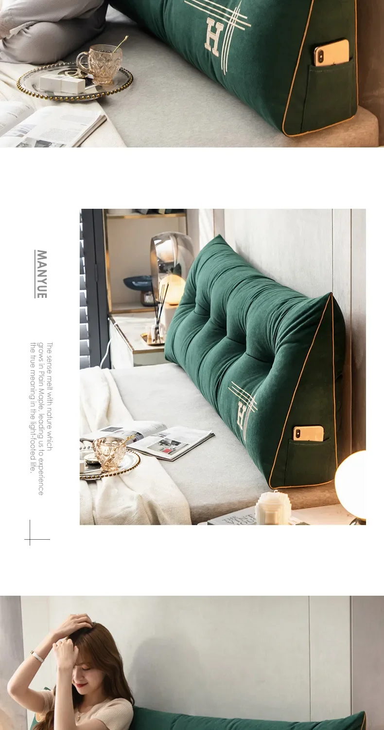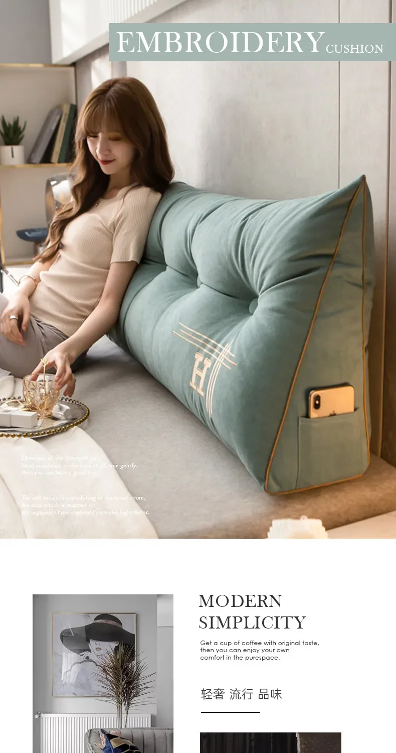 Light luxury velvet triangular bedside cushion, tatami bed cushion, embroidered large backrest, cross-border distribution