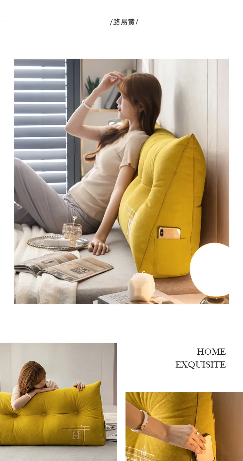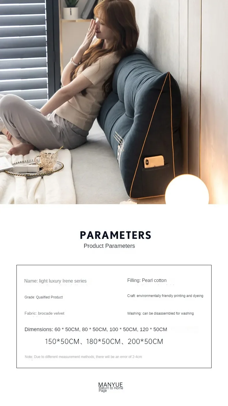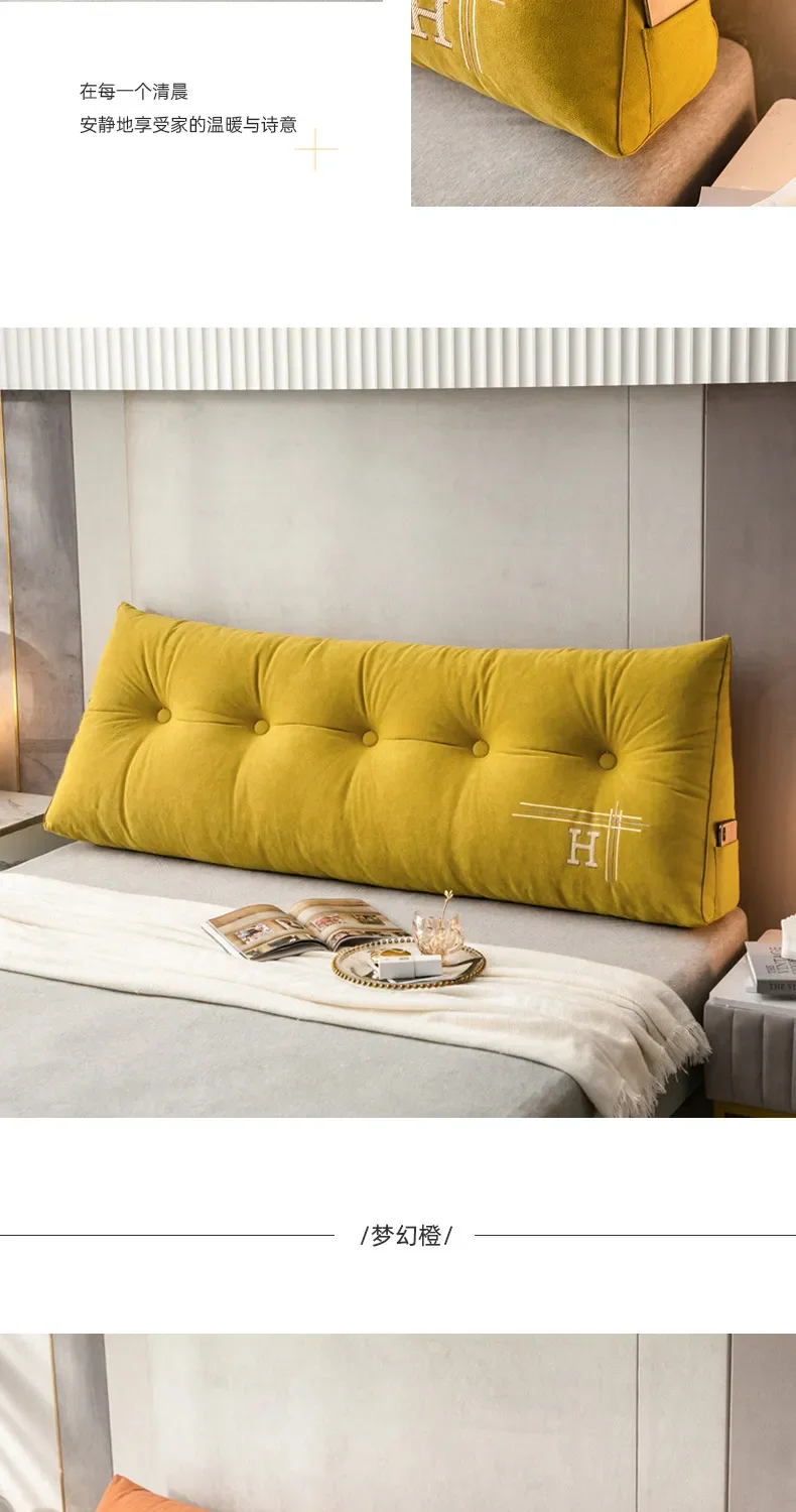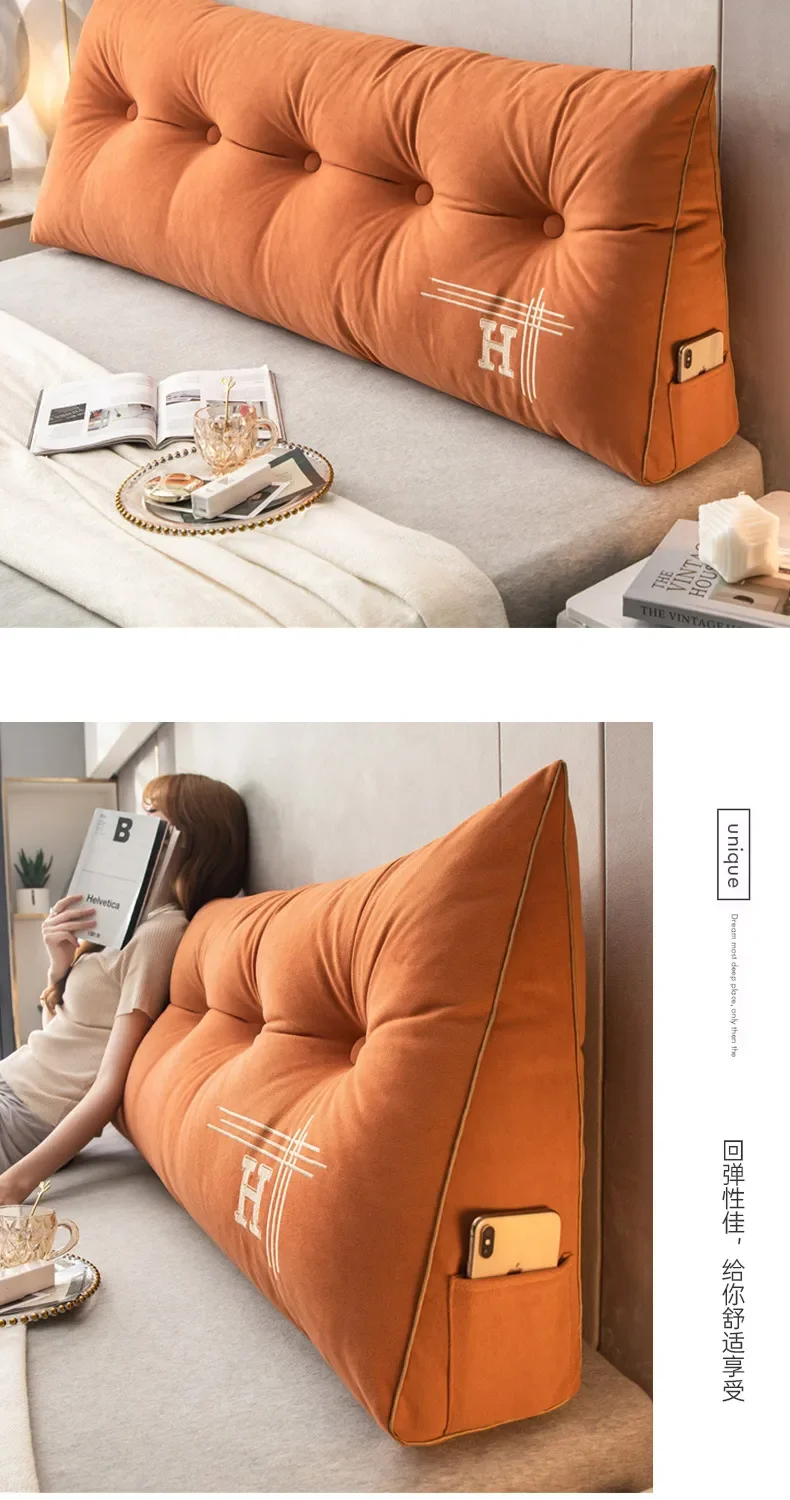 Light luxury velvet triangular bedside cushion, tatami bed cushion, embroidered large backrest, cross-border distribution