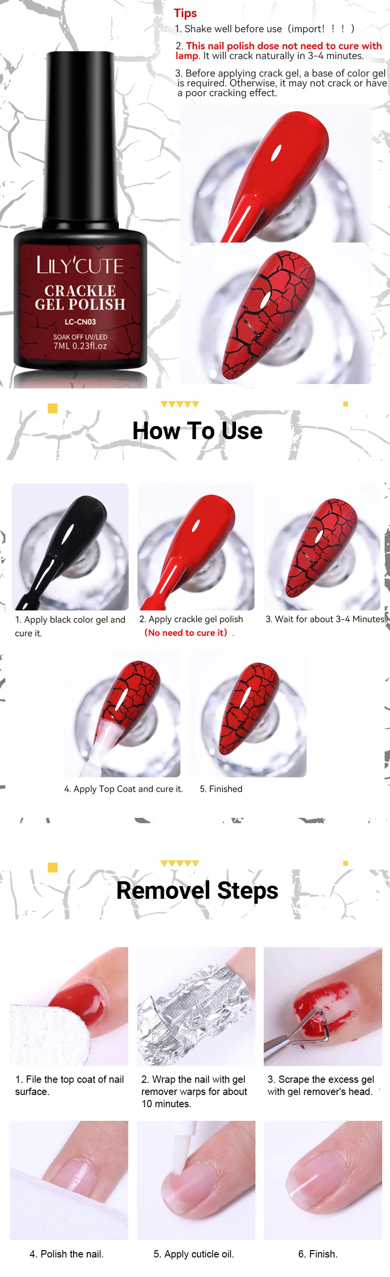 3. Apply crackle gel polish(No need to cure with UV/LED lamp)