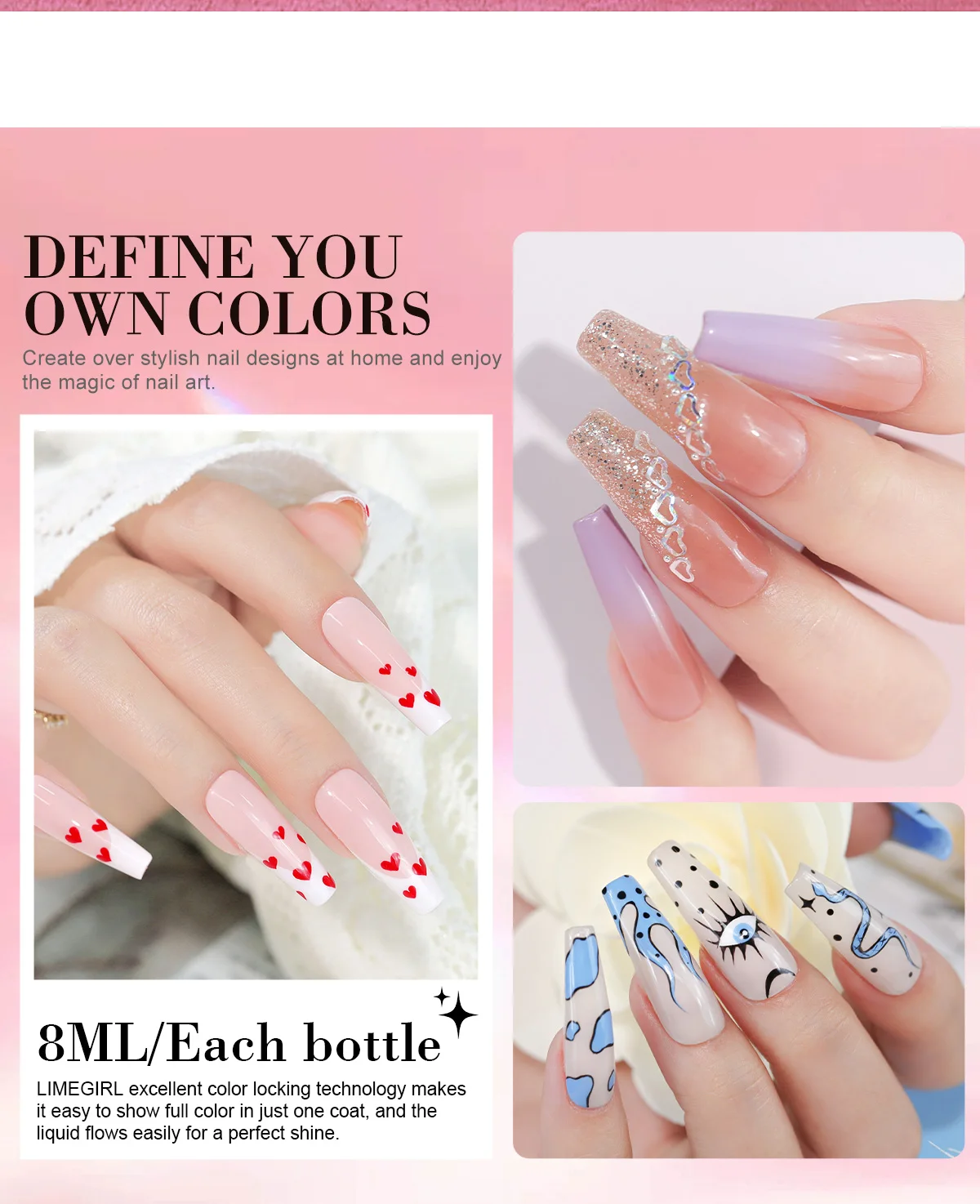 5 reviews for LIMEGIRL 120Pcs Gel Nail Polish Set 8ML Semi Permanent UV LED Varnish Nail Set Base Coat and Top Coat Nail Art Manicure