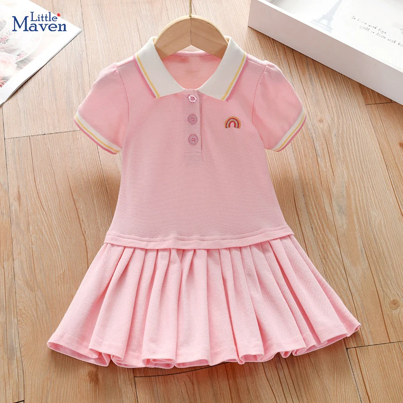 Little maven Party Dress Children’s Clothing 2024 Baby Girls Pink Dresses Rainbow Polo Summer Holiday Dresses Kids Clothes