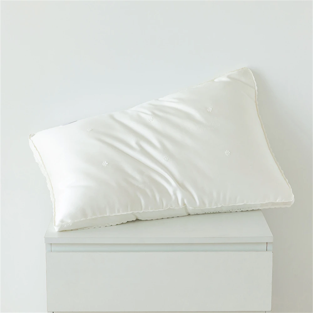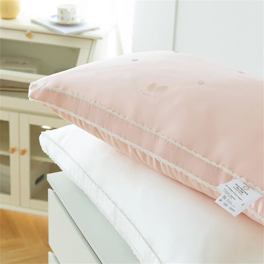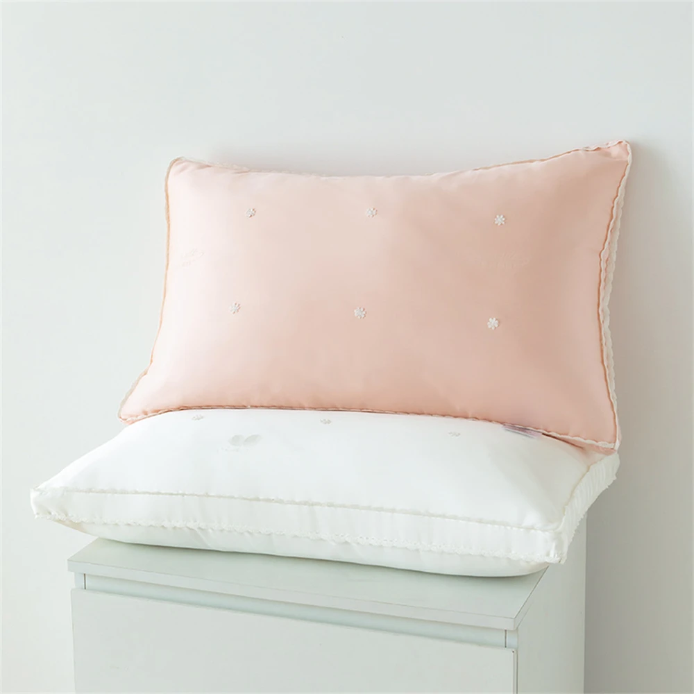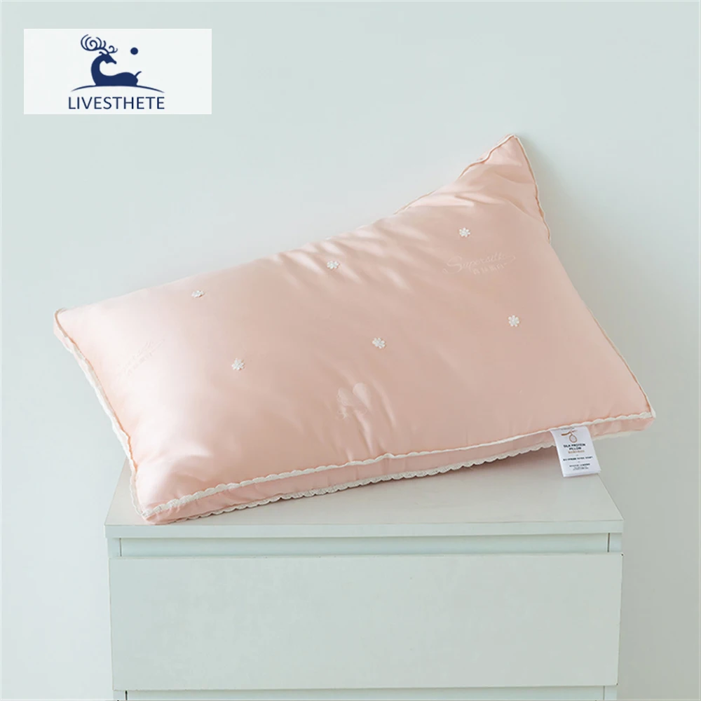 Liv-Esthete Women Sleep Gift 100% Silk Pink Pillow King Queen Silk Inner Pillow For Sleeping Neck Protection Bed Jacquard Pillow