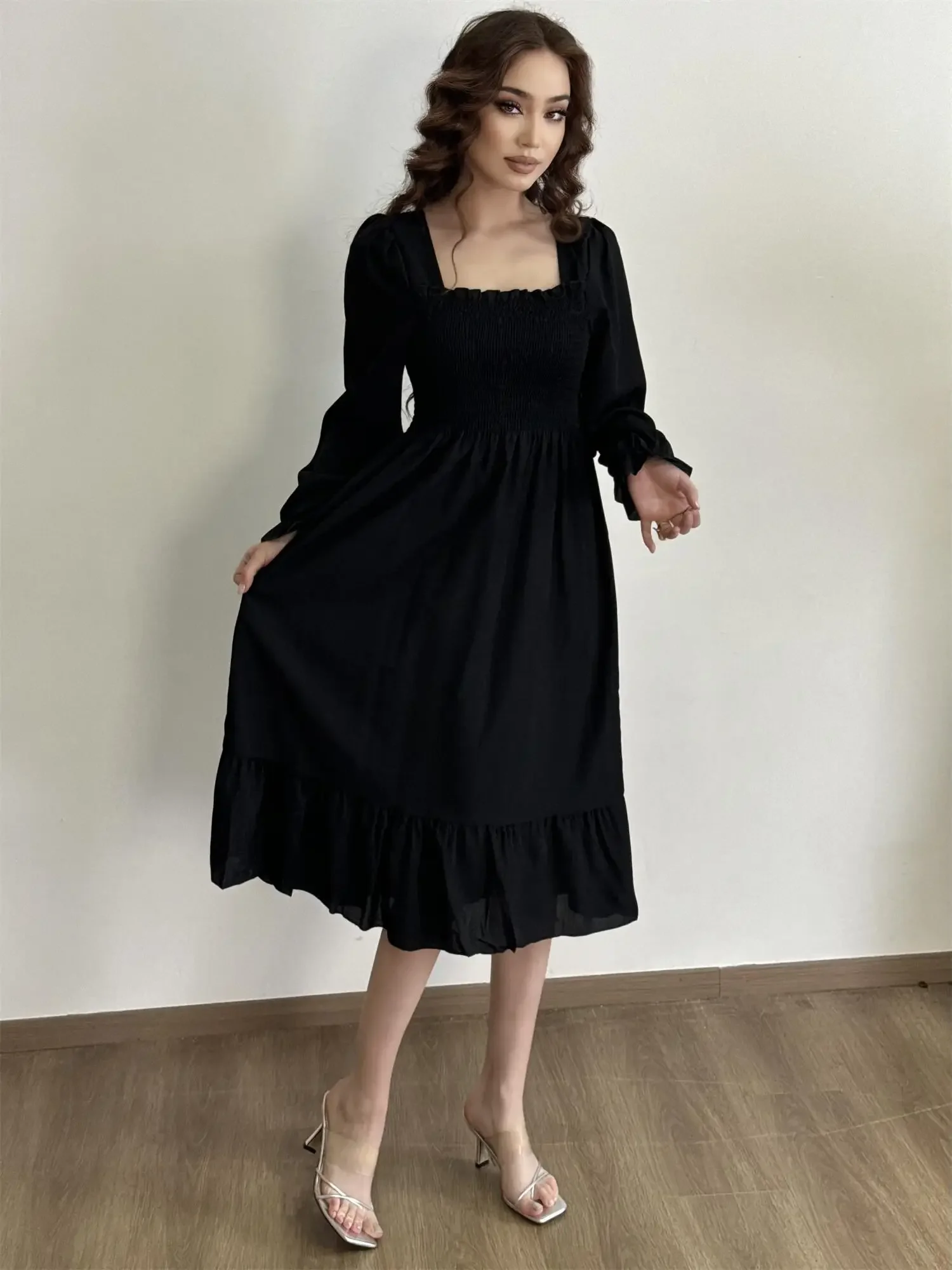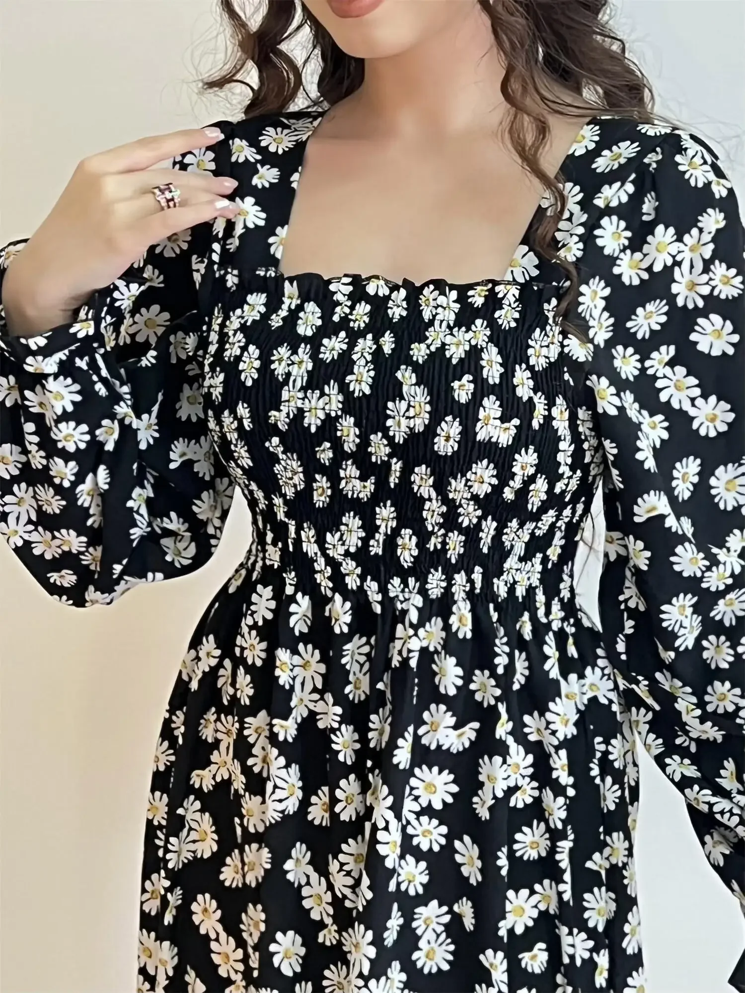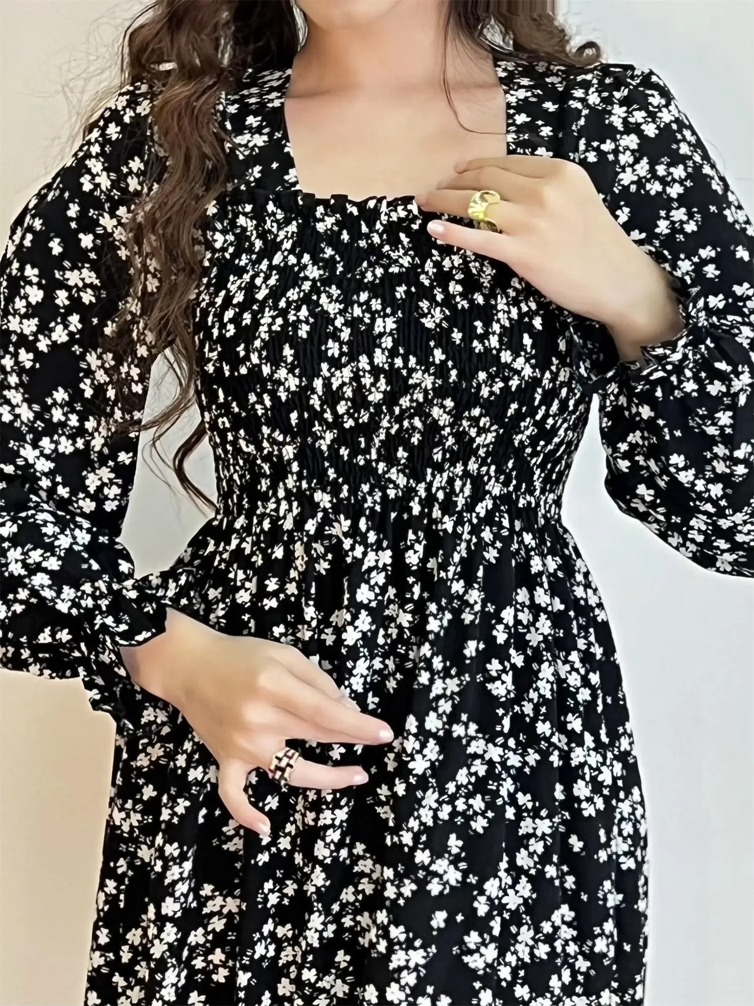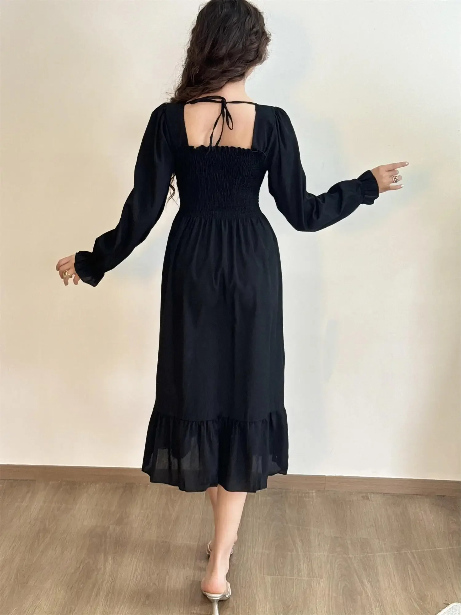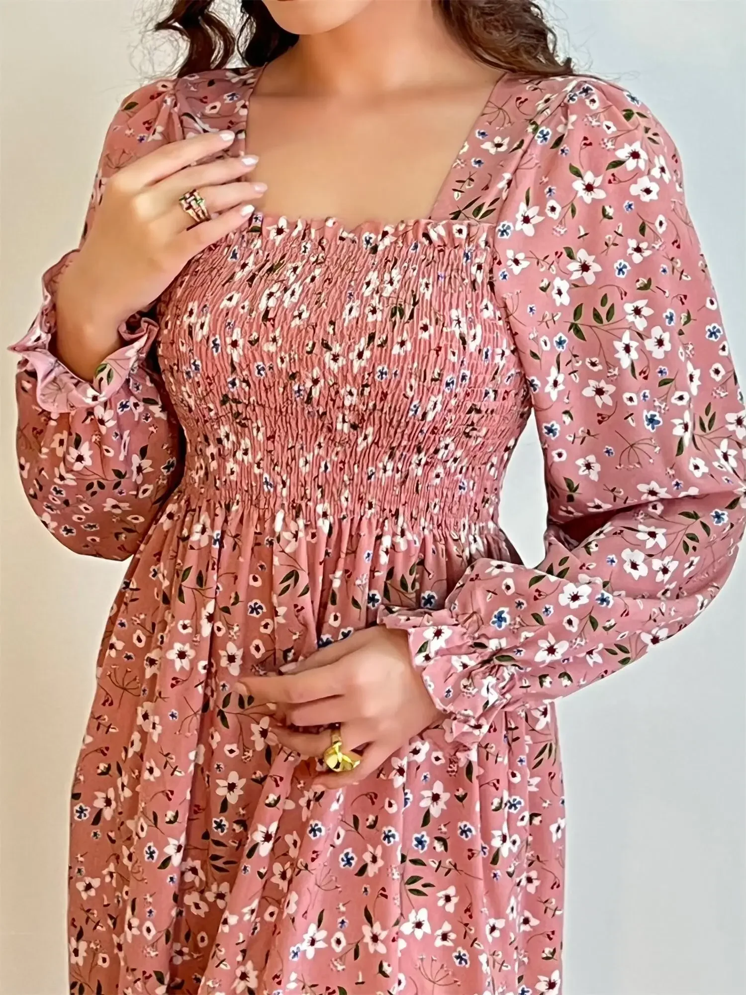 Be the first to review “Long Sleeve Casual Dress Women Chiffon Dresses Autumn Spring A-line Printed Floral Elastic Chest Lace Up Midi Dresses Vestidos”