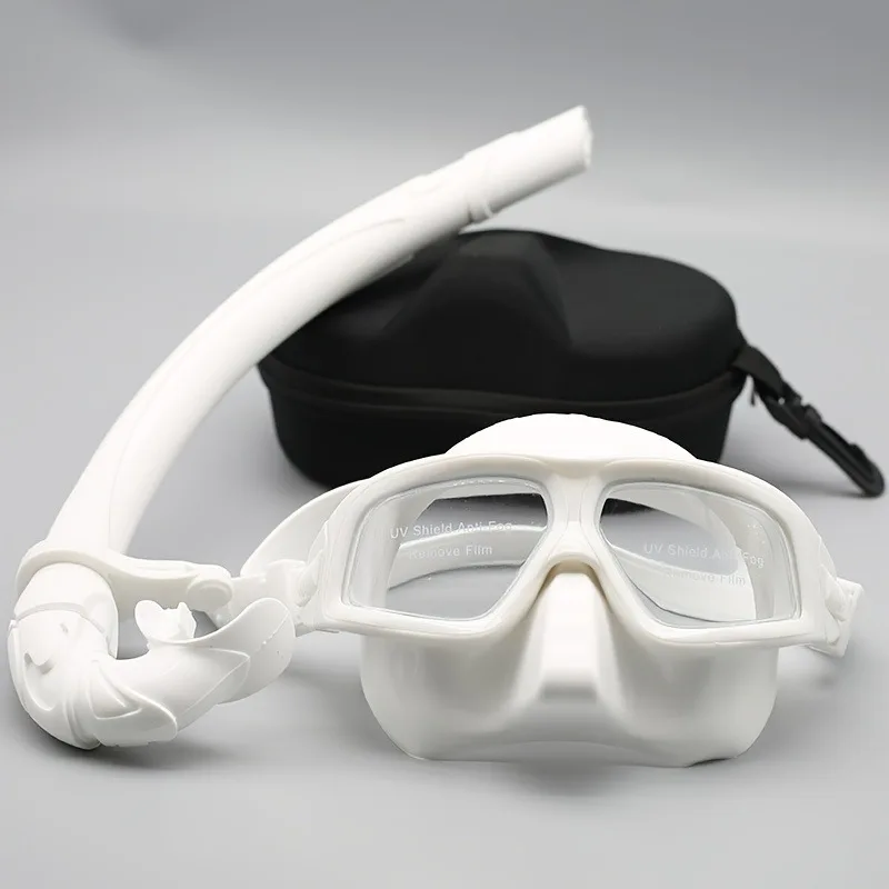 1. Low Volume Freediving mask with Anti UV-400 and Antifog clear and transparent PC Lens. This keeps your vision clear during diving.