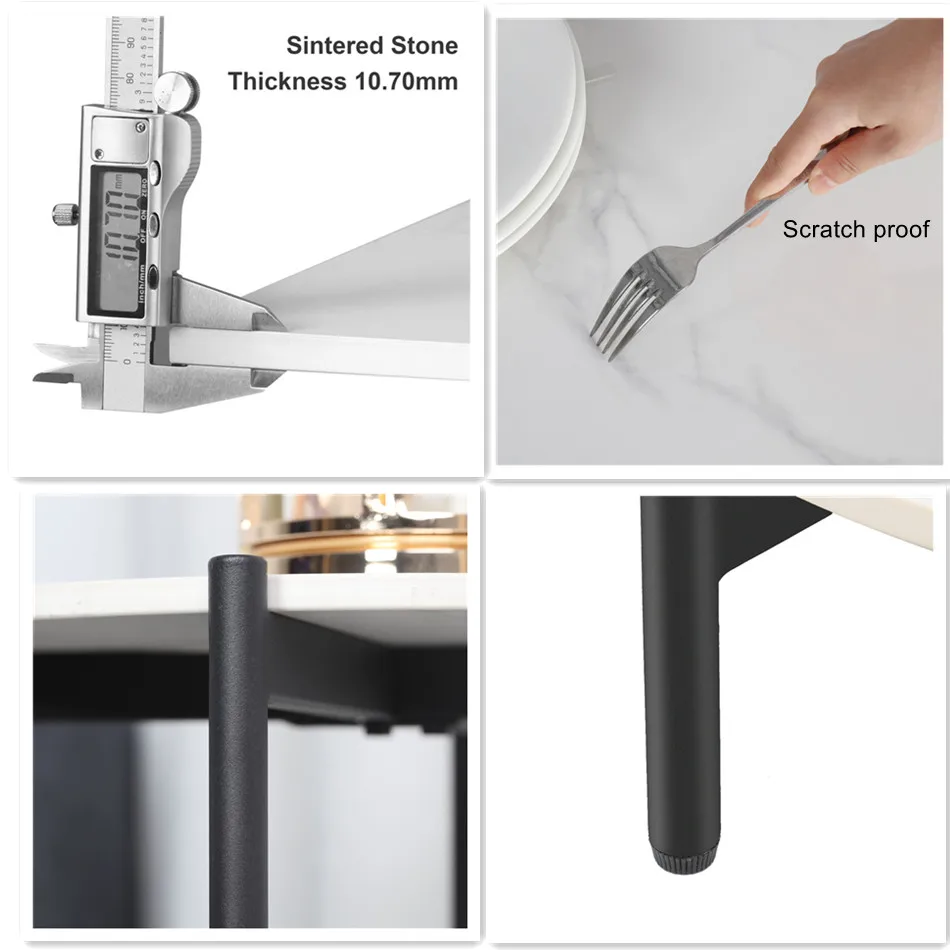 【Luxury Sintered Stone Table】Our tabletop made of sturdy sintered stone, which features natural texture, creates a touch of sophistication and visual interest, unique than marble and glass, higher hardness and toughness, resistant to scratch and high temperature