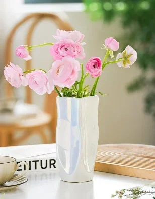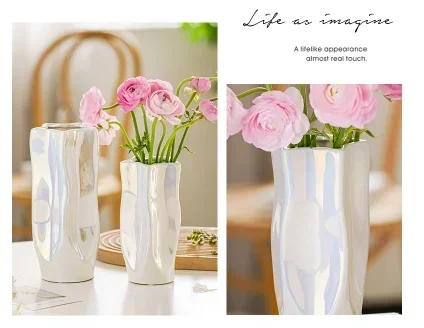 Luxury Electroplated Silver Ceramic Vase Flower Arrangement Irregular Porcelain Hydroponic Vase Ornament Interior Art Decoration
