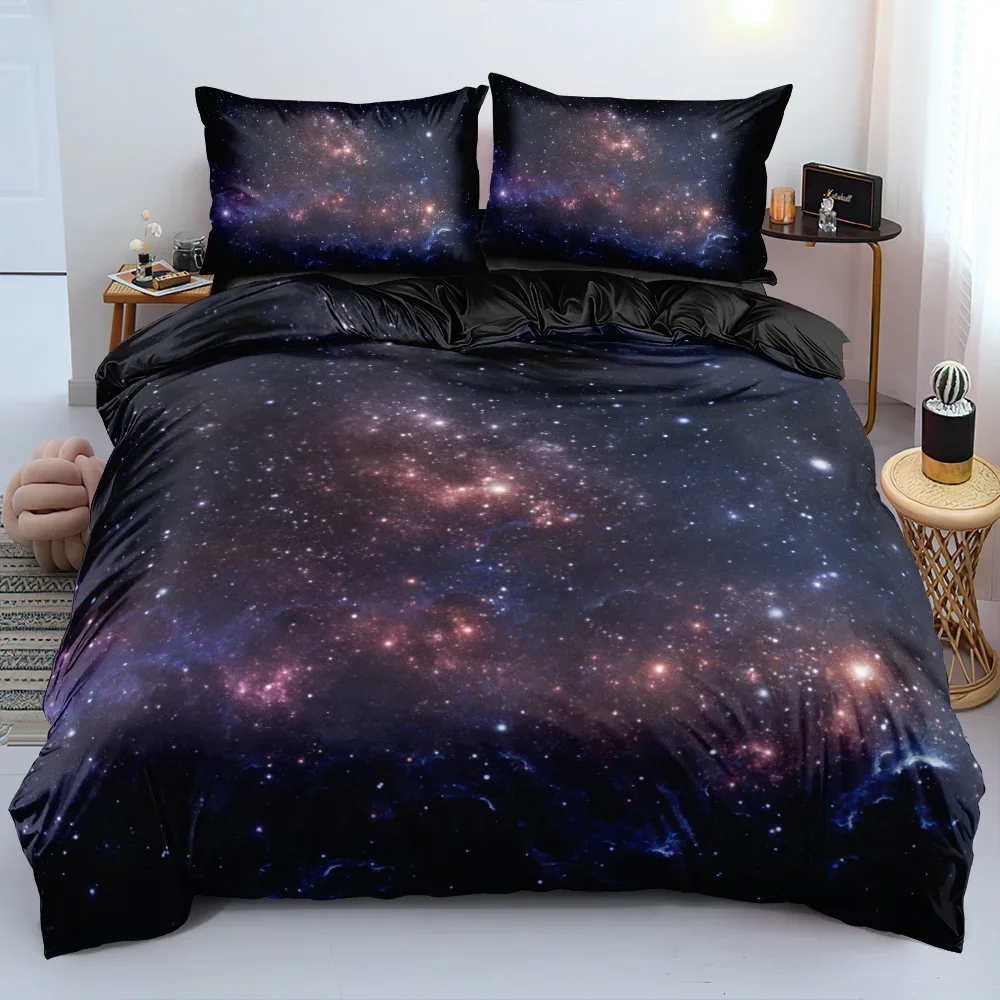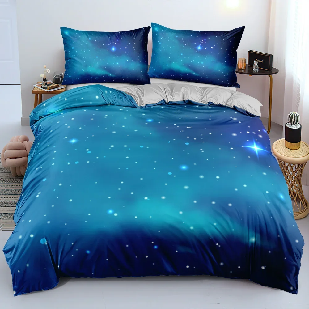 Luxury Galaxy Dark Blue Bedding Set Twin Full Queen King Size Duvet Cover Set Shining Stars Starry Sky Kids Adults Comforter Set