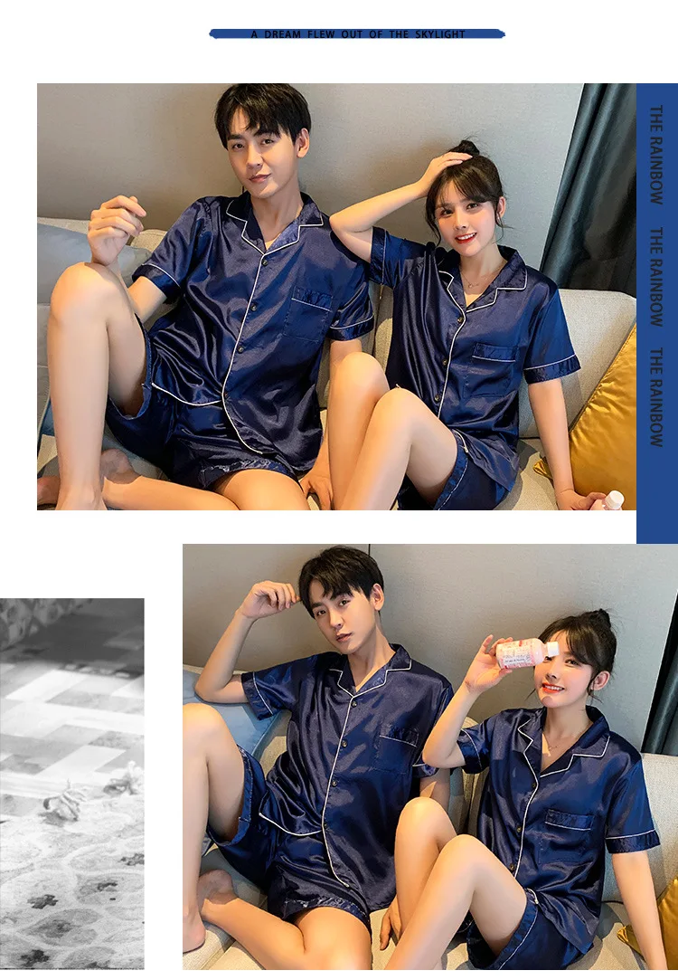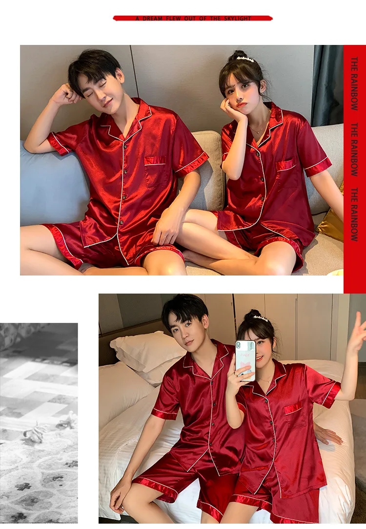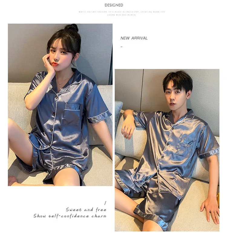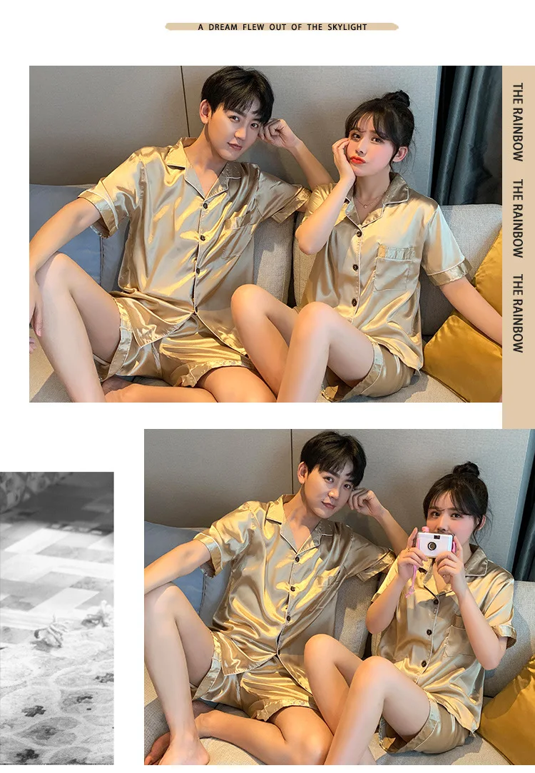 Luxury Pajama Suit Satin Silk Pyjamas Sets Couple Sleepwear Casual Family Pijama Lover Night Suit Men & Women Plus Size Pj Set