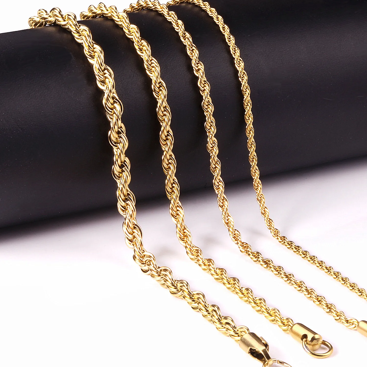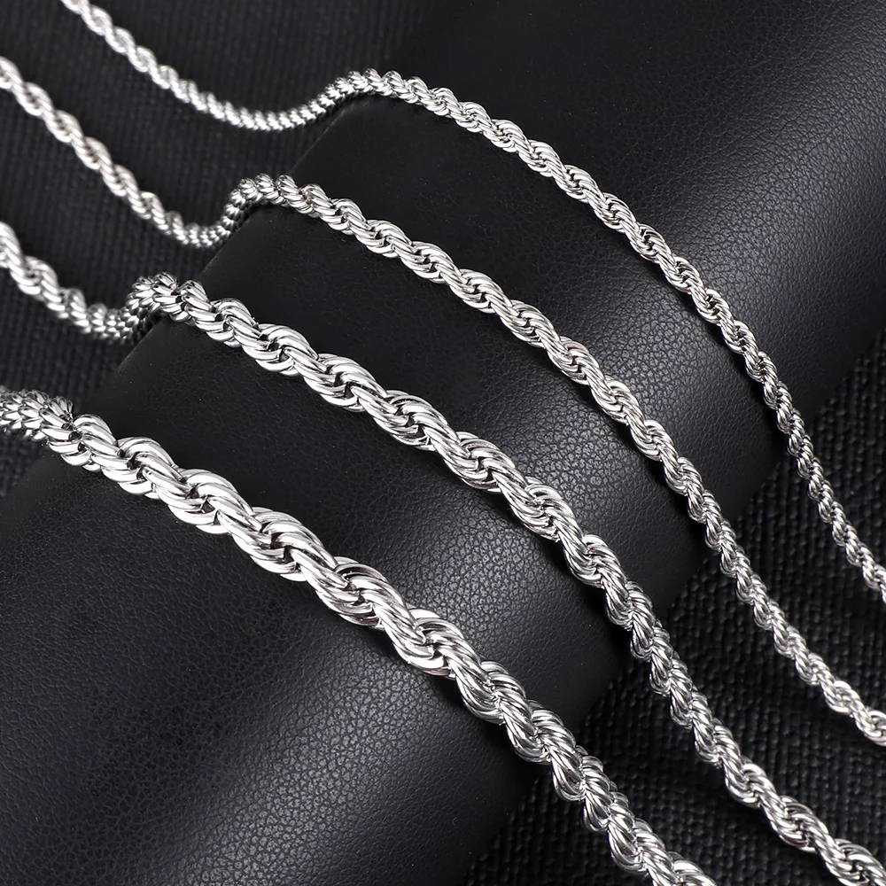 LUXUSTEEL 2/3/4/5mm Rope Chain Necklace Stainless Steel For Women Men Never Fade Waterproof Twist Choker Silver Tone Gold Color