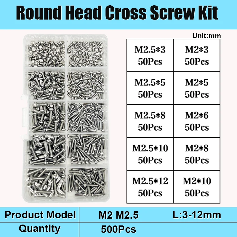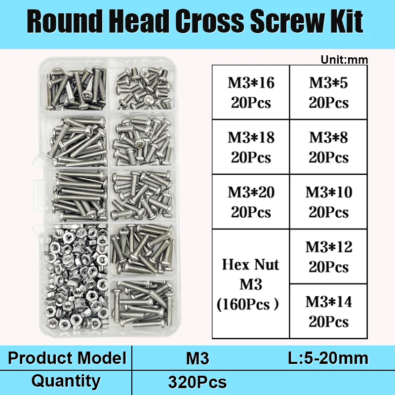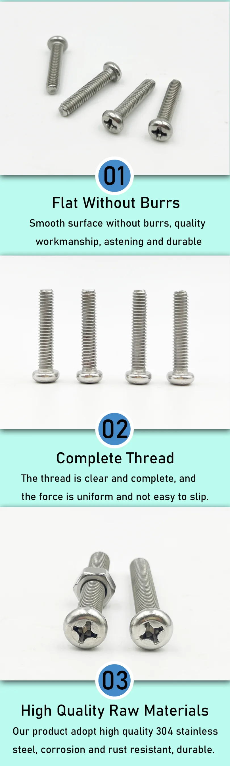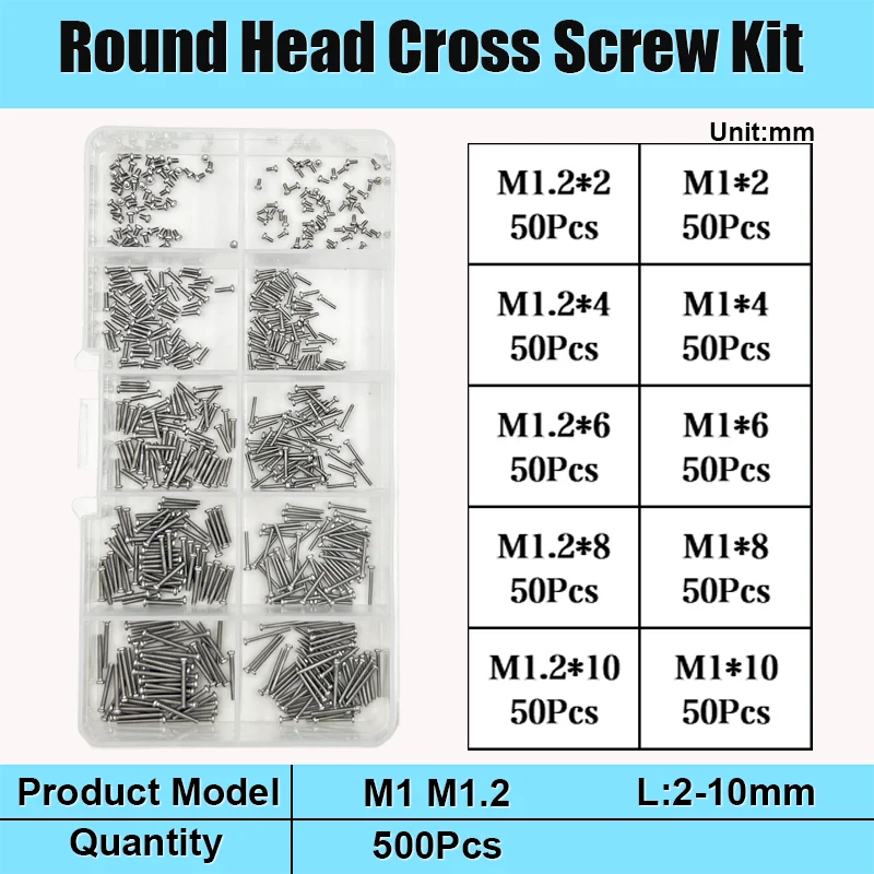 M1 M1.2 M1.6 M2 M2.5 M3 A2 Stainless steel Cross Round Head Screw Nut Set Round Pan Head Screw Bolt Phillips Small Machine Screw