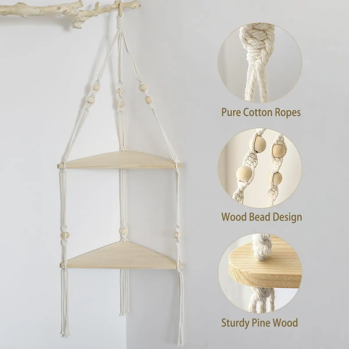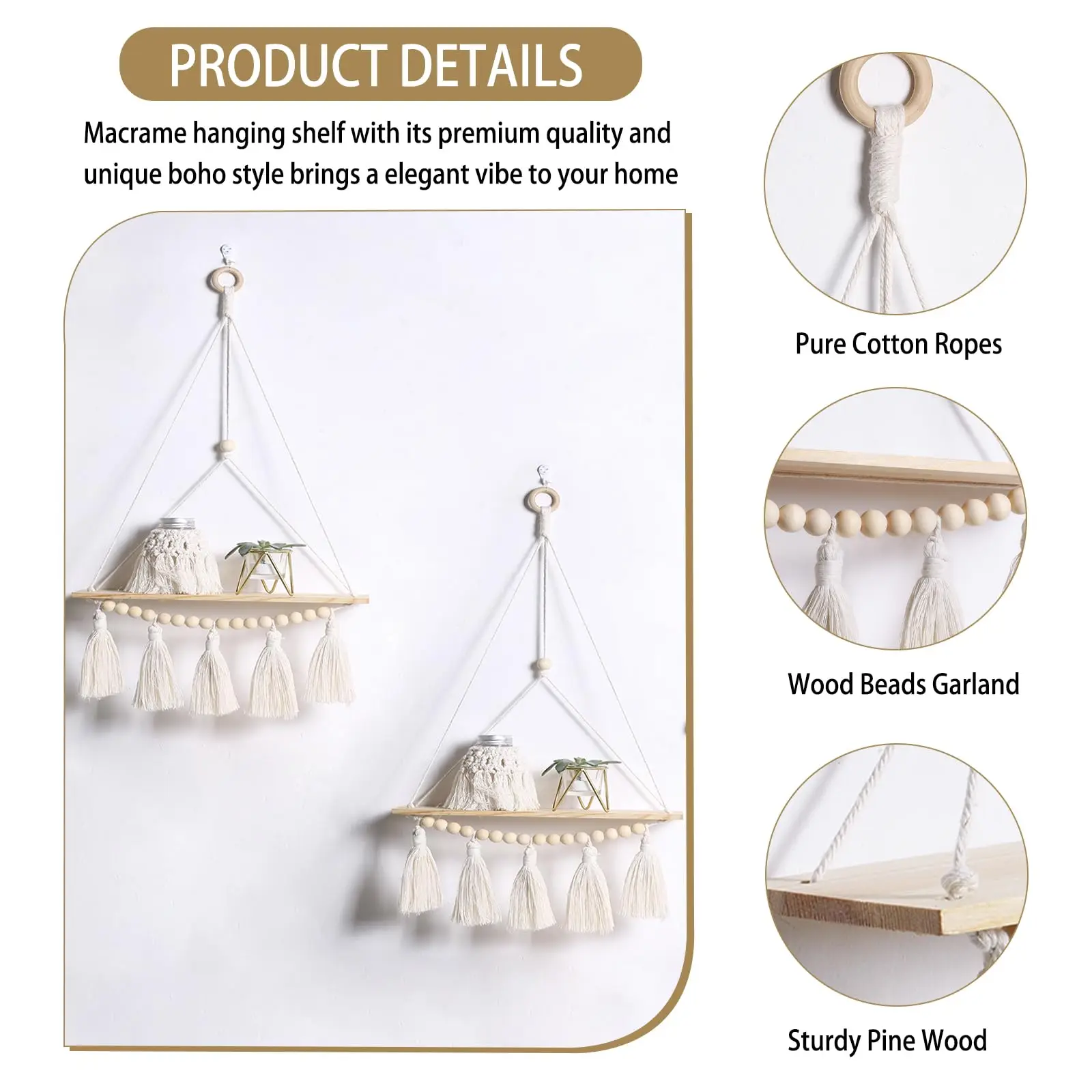 【Exquisite Wooden Board】 The hanging wooden shelf is made of natural recycled wood, has no odour, has the natural texture of the wooden board. Therefore, the overall unique beauty of the hanging shelf rope is added. Each board of the hanging shelf is unique, so each shelf is a small surprise. outside the board is protected with coating protection for long-term use.