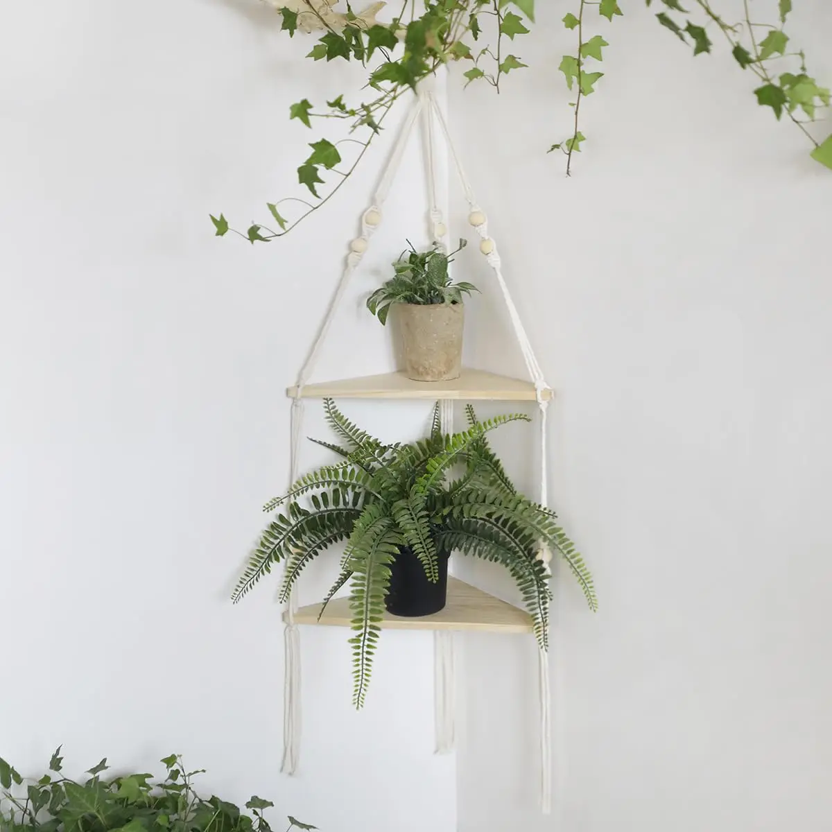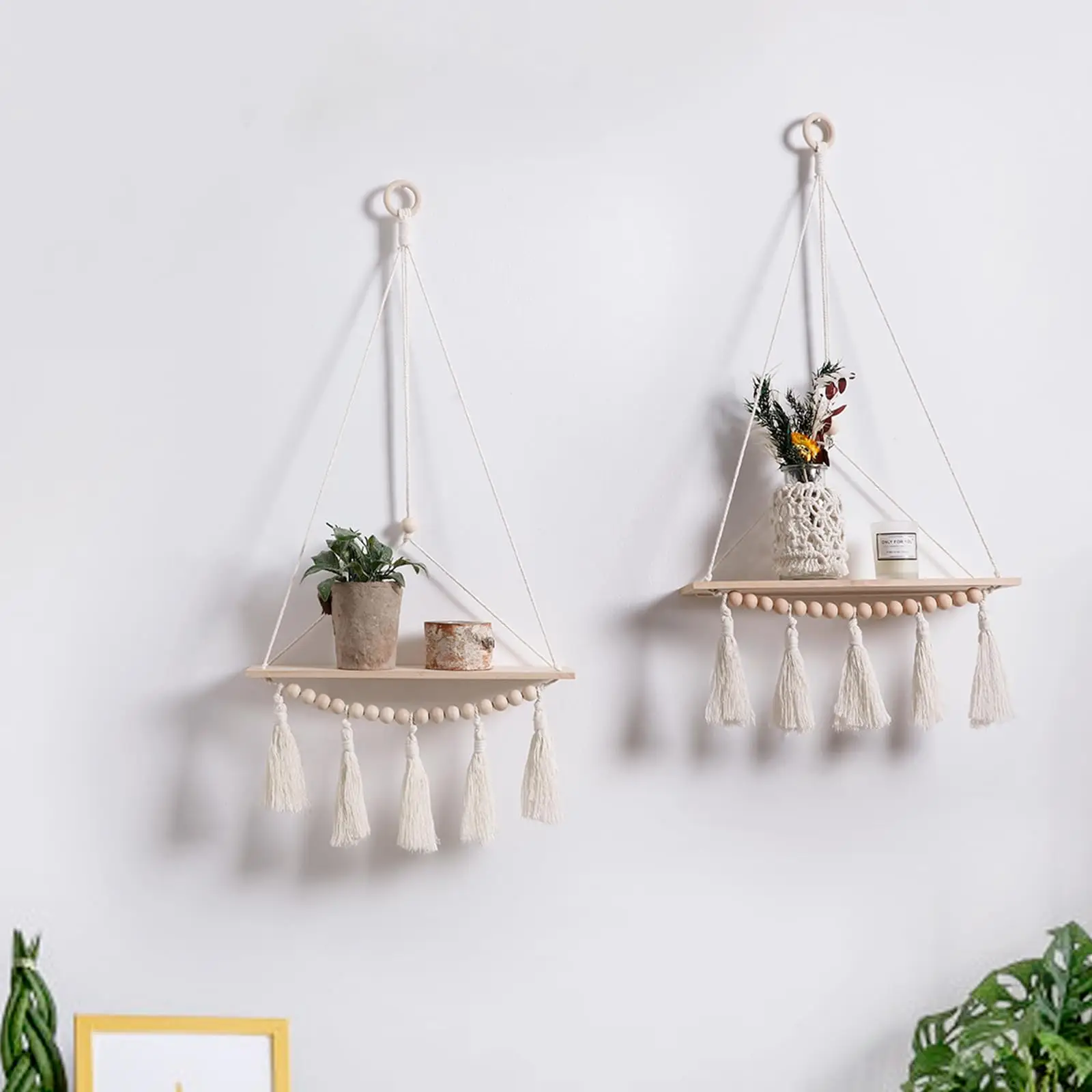 【Best Decoration】This wood hanging shelf is the best decoration in the home. It can be hung in various places in the home. It can be hung in the bedroom to place photo frames. a living room hung potted plants, hung in the bathroom to put the cosmetics and skincare products. Stylish and practical is the perfect decoration on the wall.