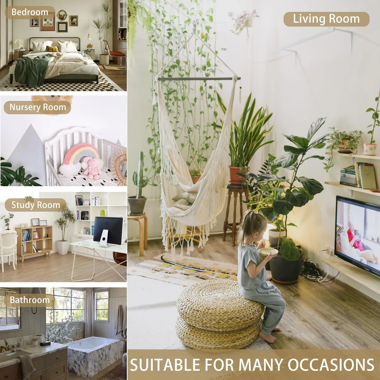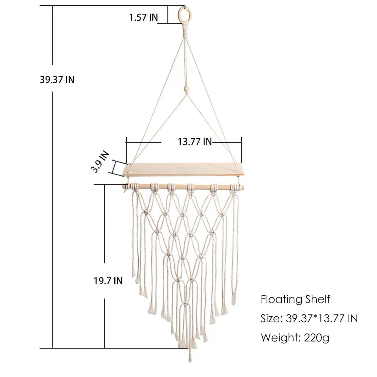 【Easy to adjust and keep the balance】You can adjust the rope to maintain the balance of the hanging rope shelves. Also equipped with a metal ring for easier adjustment and balance.