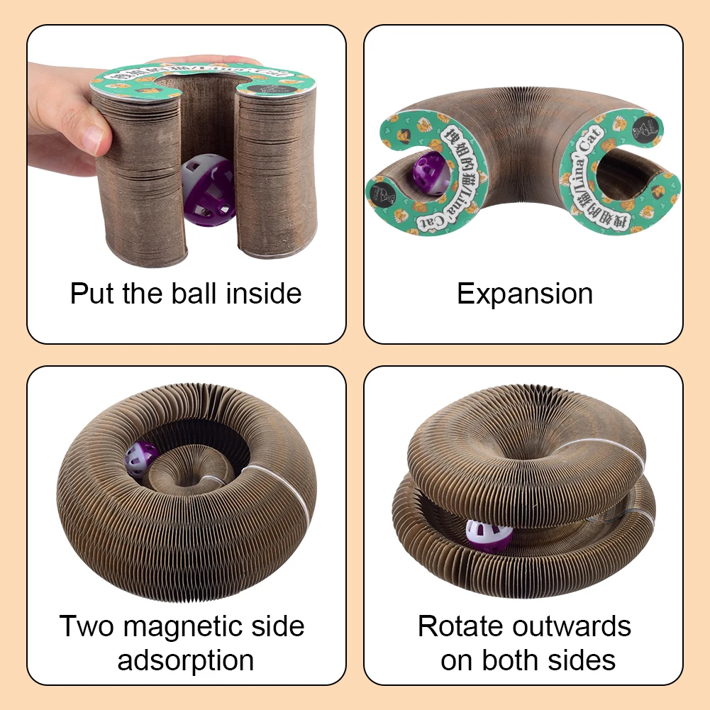 Strong high-pressure bonding, not easy to deform, rest assured to grind the claw, cat cordian magic cat scratching board With built-in round bell ball in the middle of the scratcher with a pleasant jingle when rolling. Serves as both a scratching board and a lounge for your cats, providing a comfortable environment for cats’ playing and lying.
