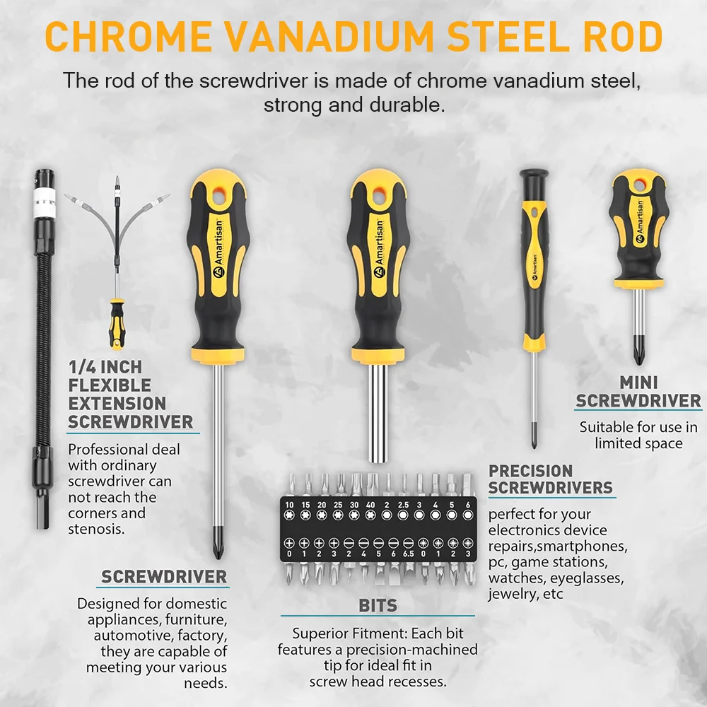 Magnetic Screwdriver Set with Case, 42pcs Precision Screwdriver Tools Includes Slotted, Phillips, Hexagonal, Torx