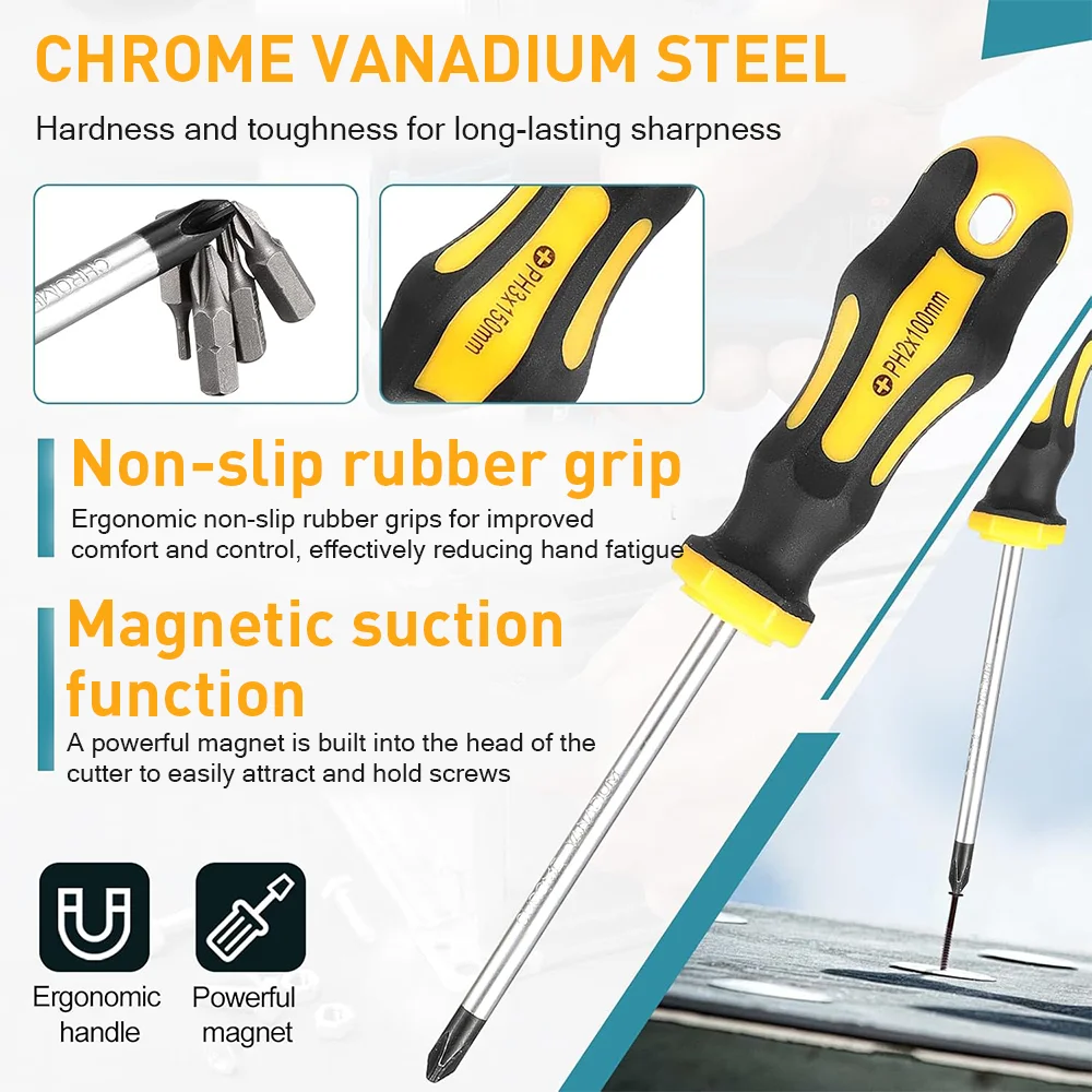 Phillips slot: PH2x38mm., PH1x75mm., PH2x100mm., PH3x150mm