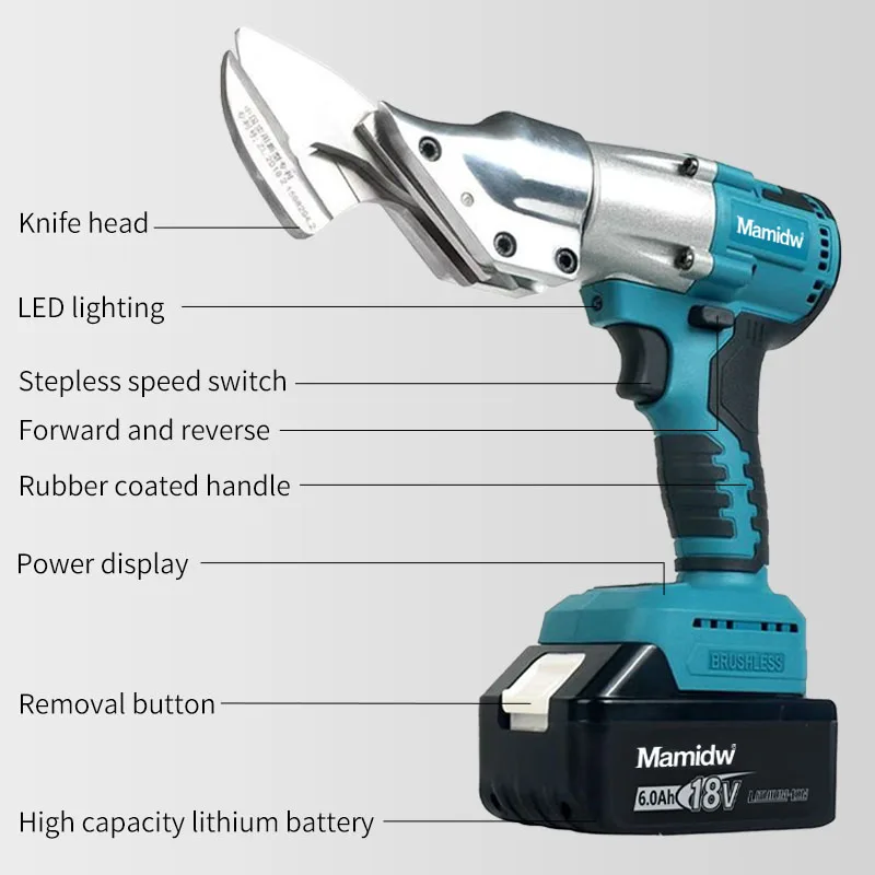 Mamidw 320N.m Cordless Metal Shear Brushless Electric Iron Scissor 2 Speed with LED Light for Makita 18V Battery pin quantity