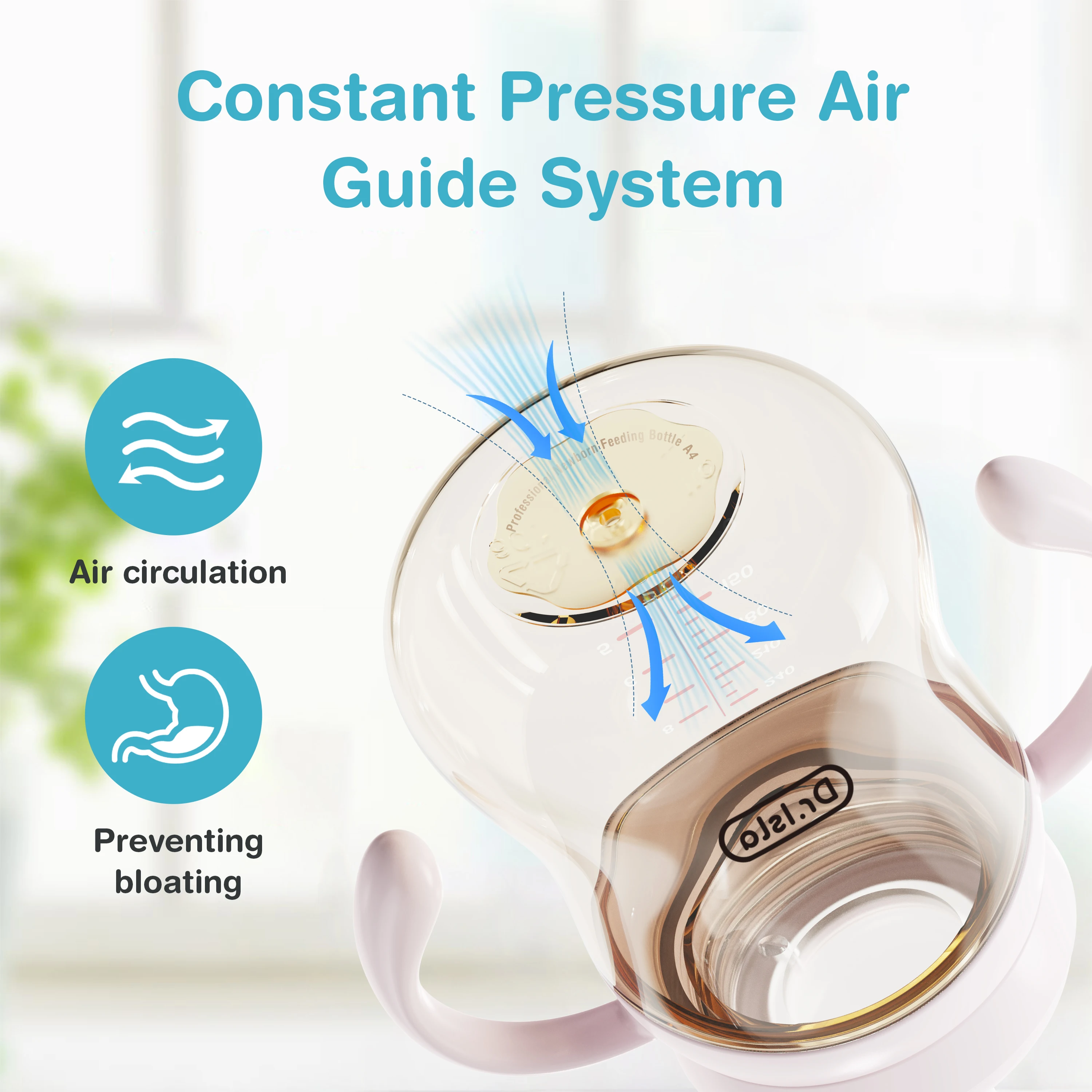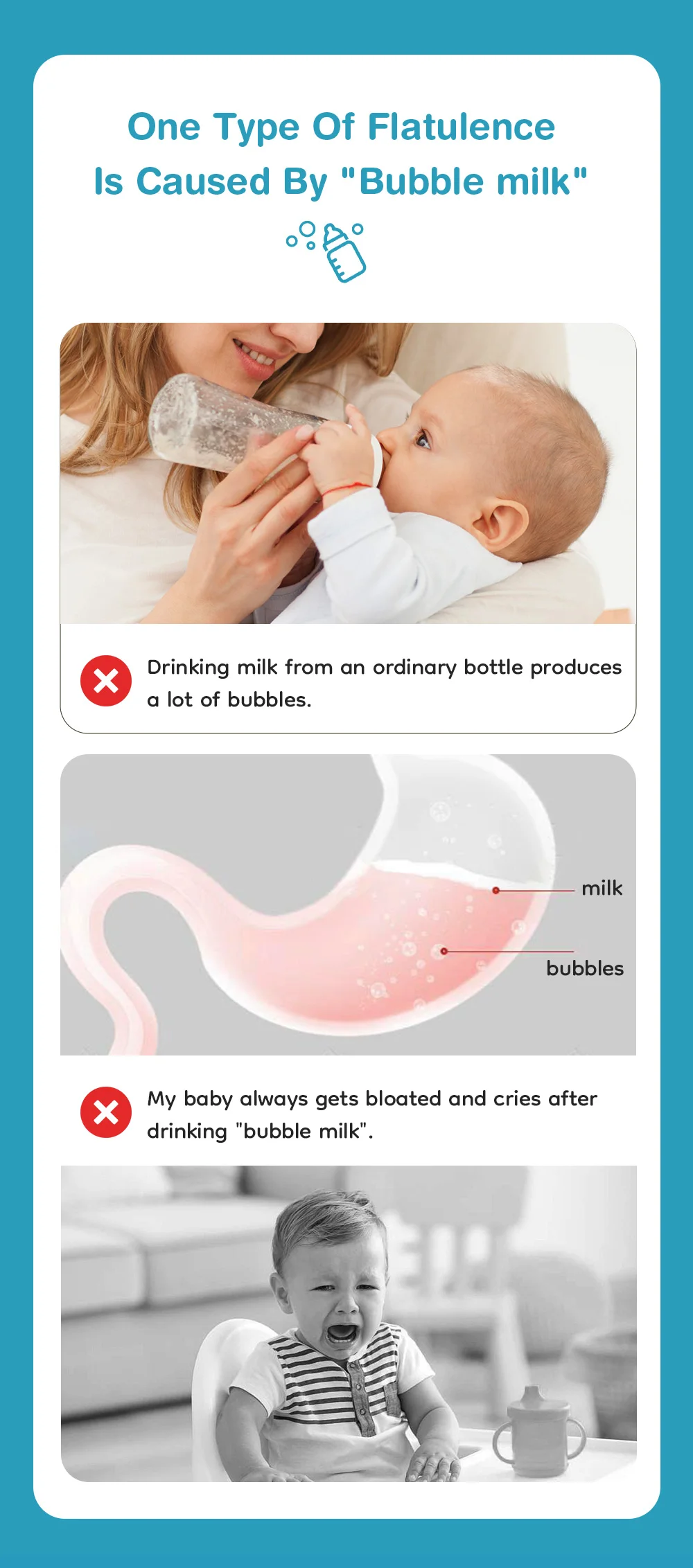 3. Integrated double valve design balances the air pressure inside and outside the bottle, effectively reducing gas and colic.