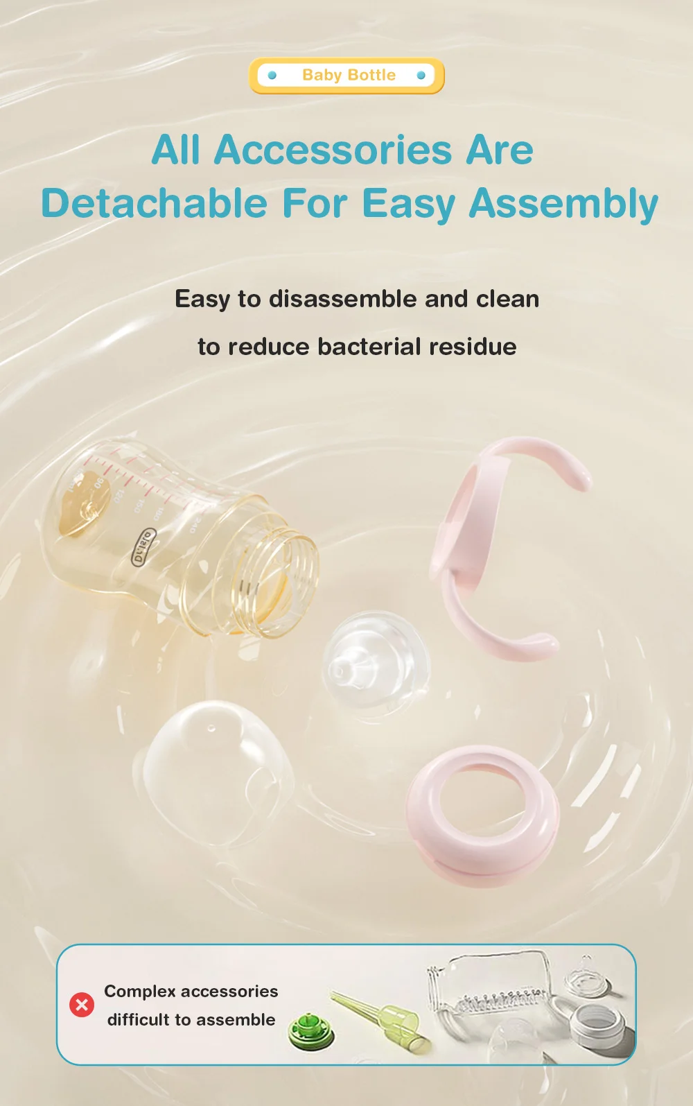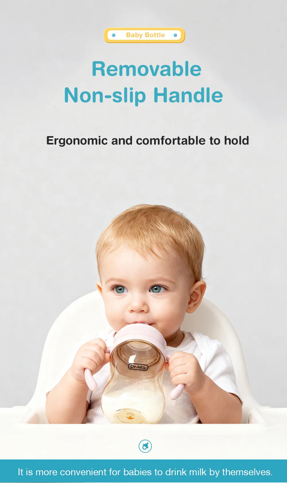 8. Removable anti-slip handle adapts to your baby’s grip, making it easy for the baby to hold the bottle independently and facilitating the transition to the drinking process.