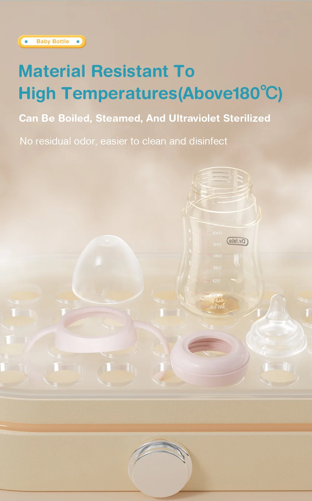 1. Made of PPSU, BPA-free and BPS-free, this bottle offers better chemical resistance and safety through multiple sterilizations.