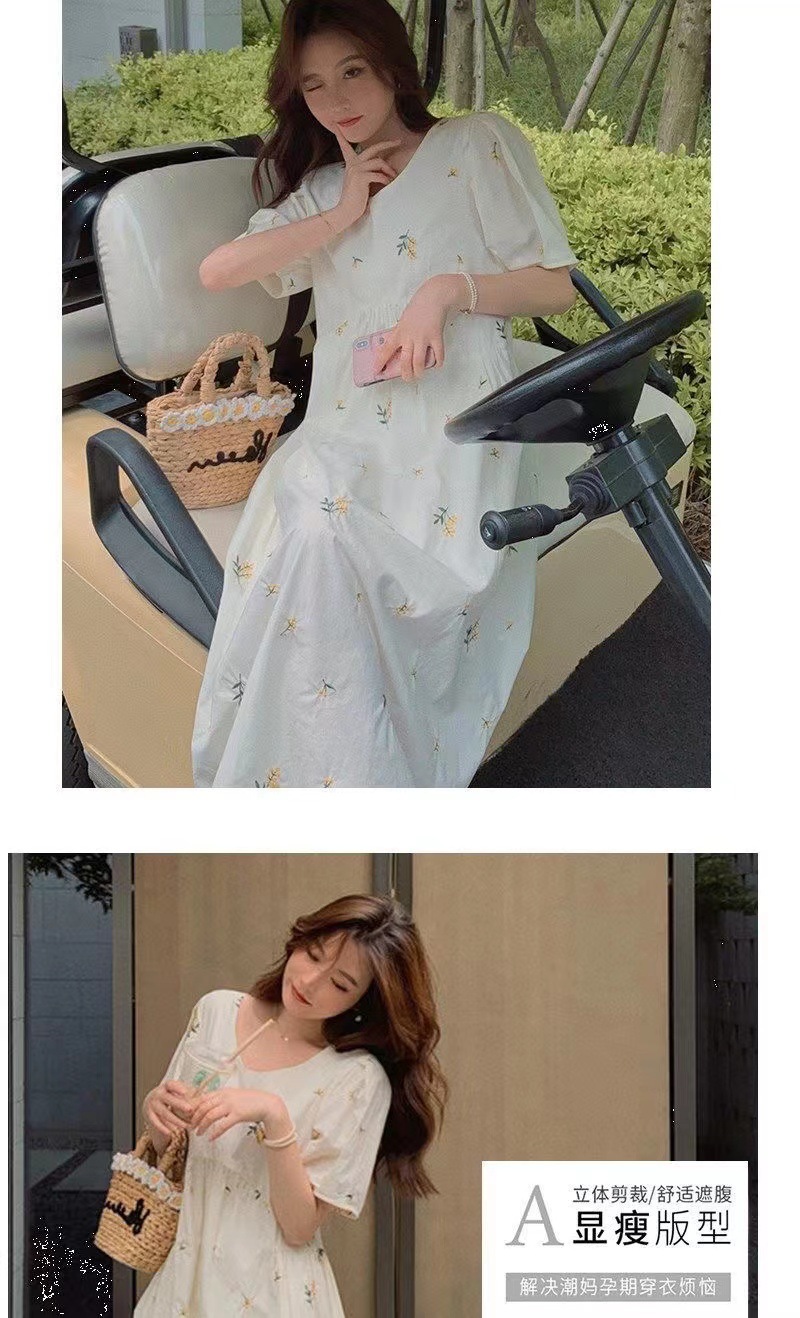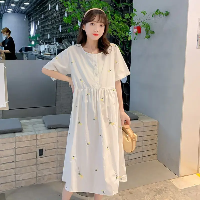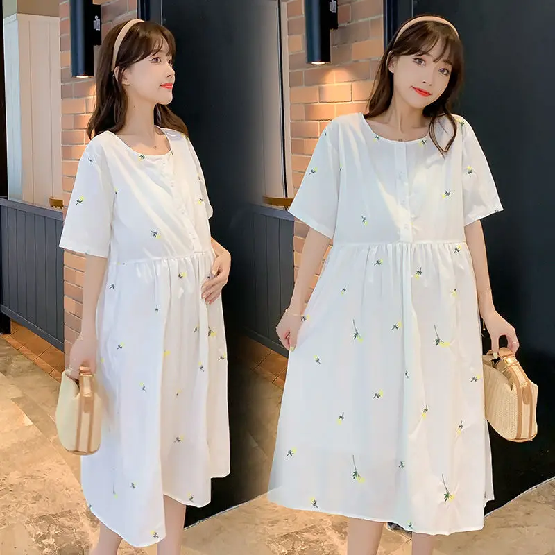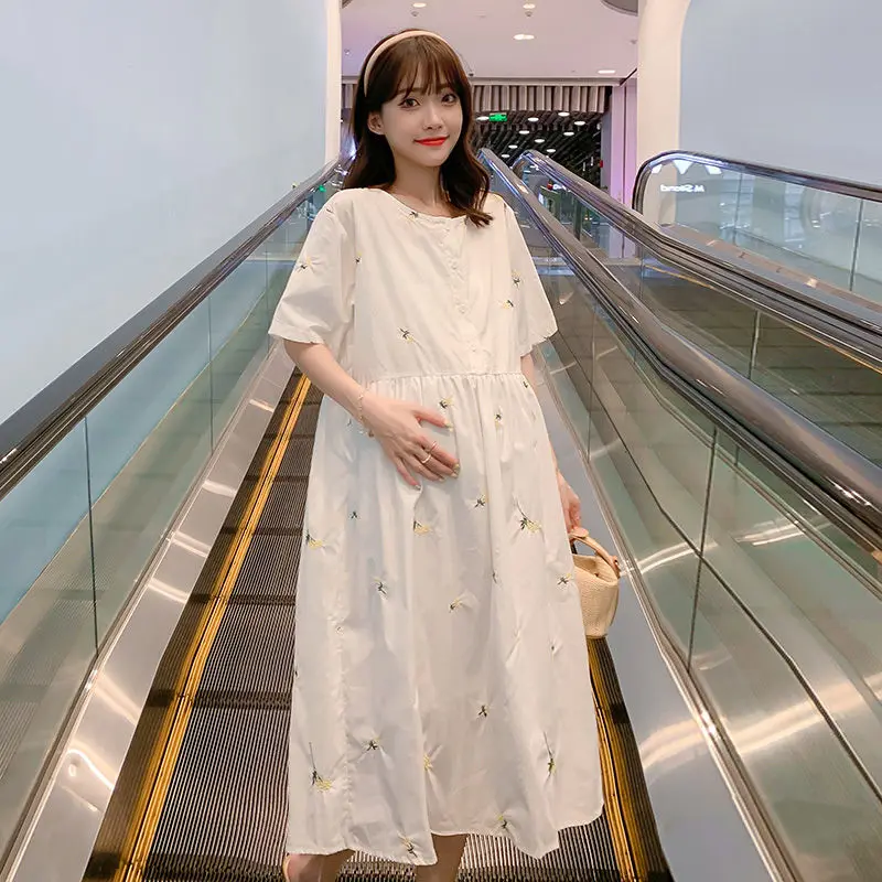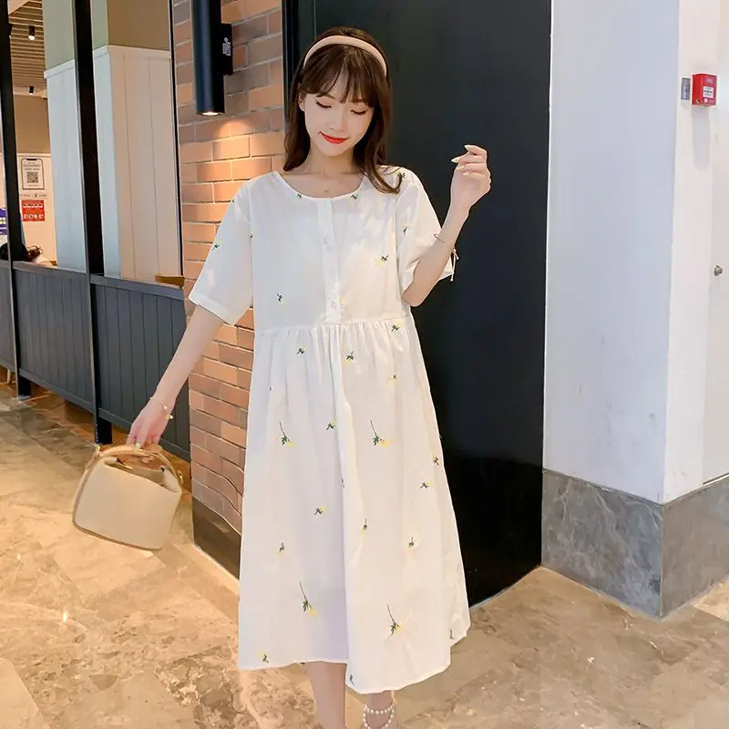 Maternity Fashion Dresses Summer Pregnancy Women Doll Dress A-line Loose Short Sleeve Skirt Pregnant Mom Clothing