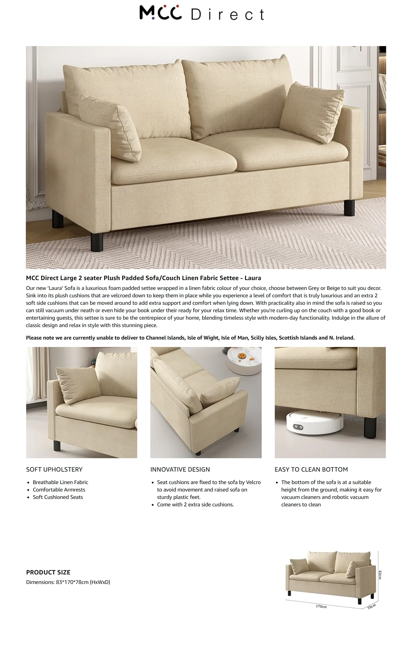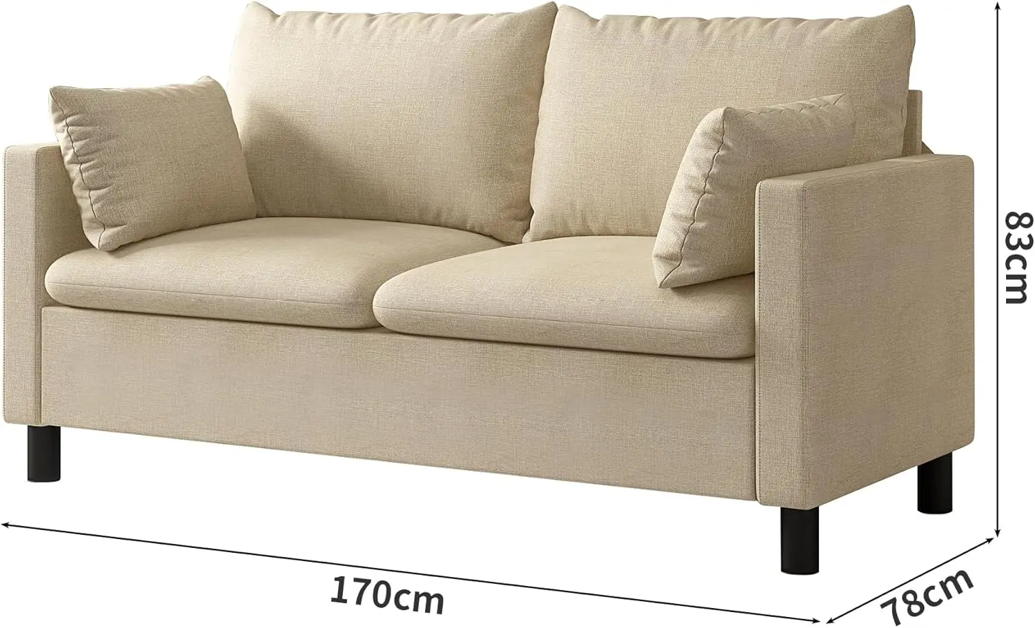 mcc direct 2 Seater Sofa, Linen Fabric Loveseat Sofa, Couch Settee with Armrests, Wood Legs for Living Room, Office, Bedroom