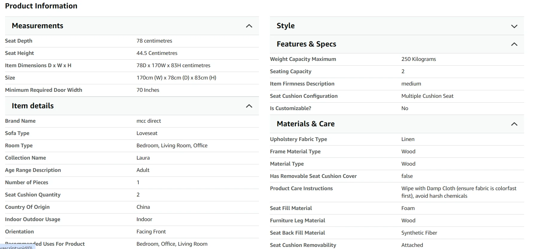 Be the first to review “mcc direct 2 Seater Sofa, Linen Fabric Loveseat Sofa, Couch Settee with Armrests, Wood Legs for Living Room, Office, Bedroom”