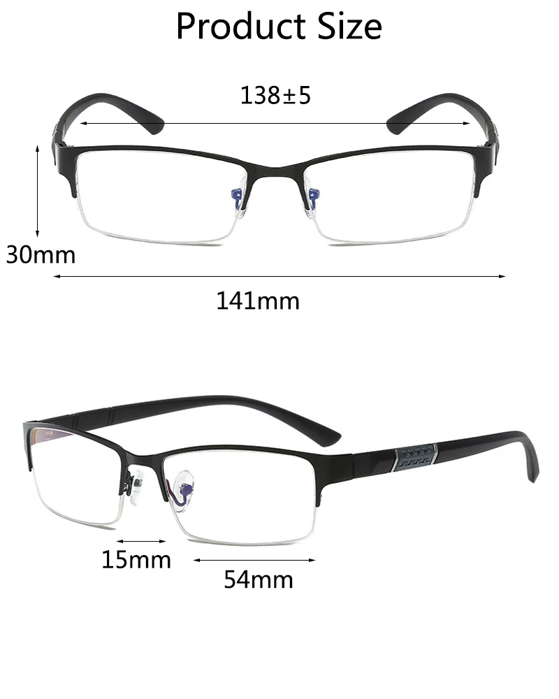 Be the first to review “Men Half Frame Metal Reading Glasses Business Style Male Vintage Far Sight Presbyopia Anti-blue HD TR90 Diopter Eyeglasses”