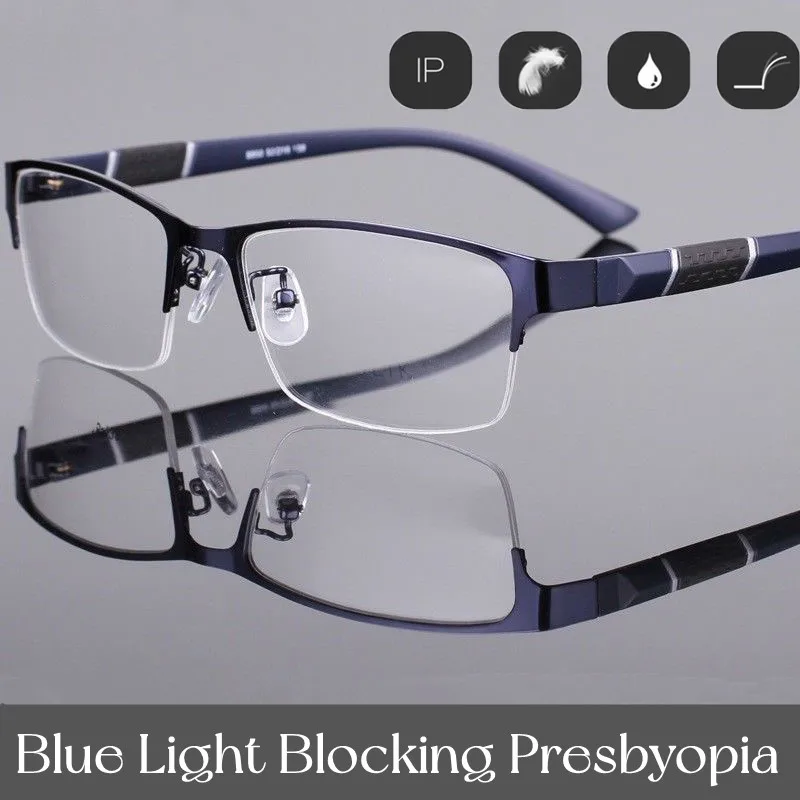 Men Half Frame Metal Reading Glasses Business Style Male Vintage Far Sight Presbyopia Anti-blue HD TR90 Diopter Eyeglasses