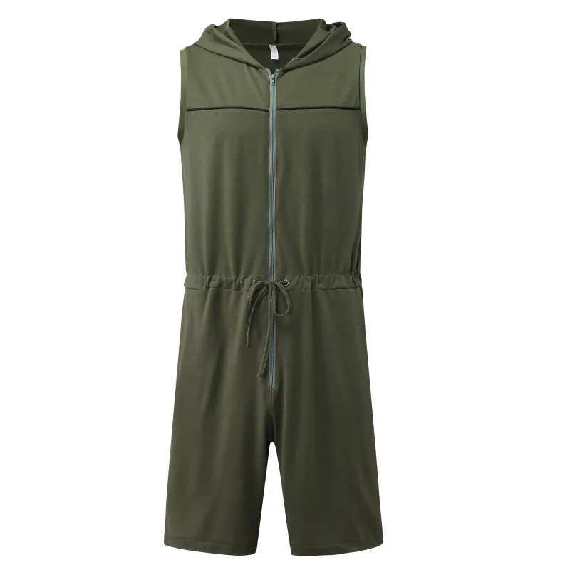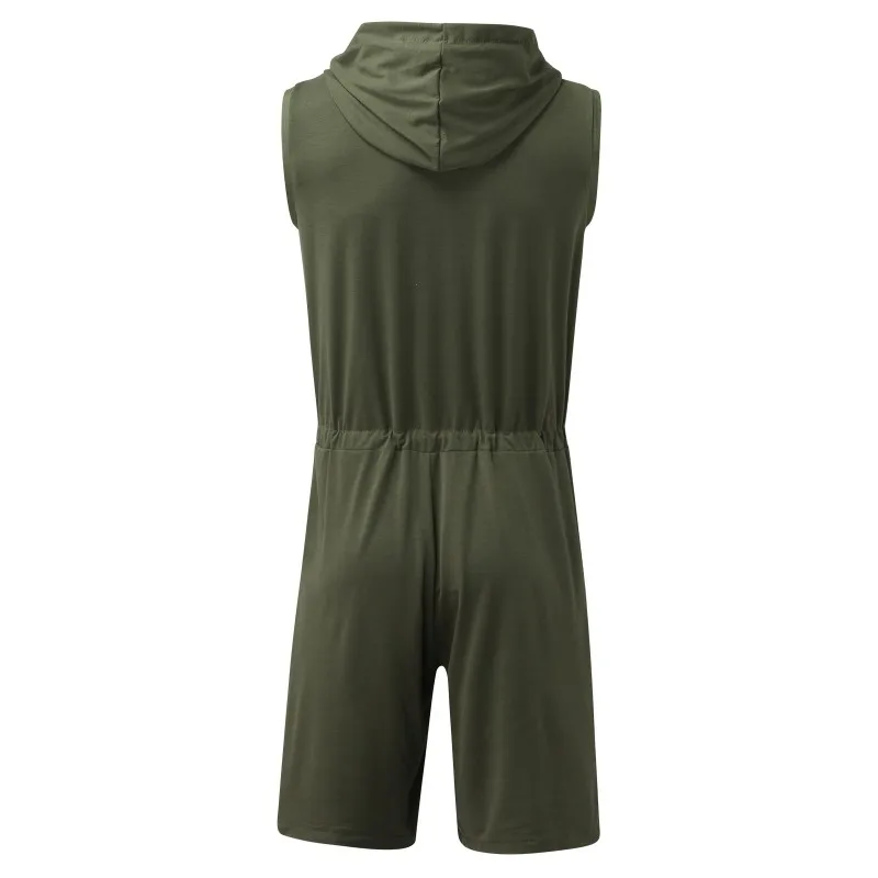 Men Short Jumpsuit Tight Sleeveless Bodysuit Zipper Hooded Rompers Short Pants Casual Home Wear Tracksuit Pajamas