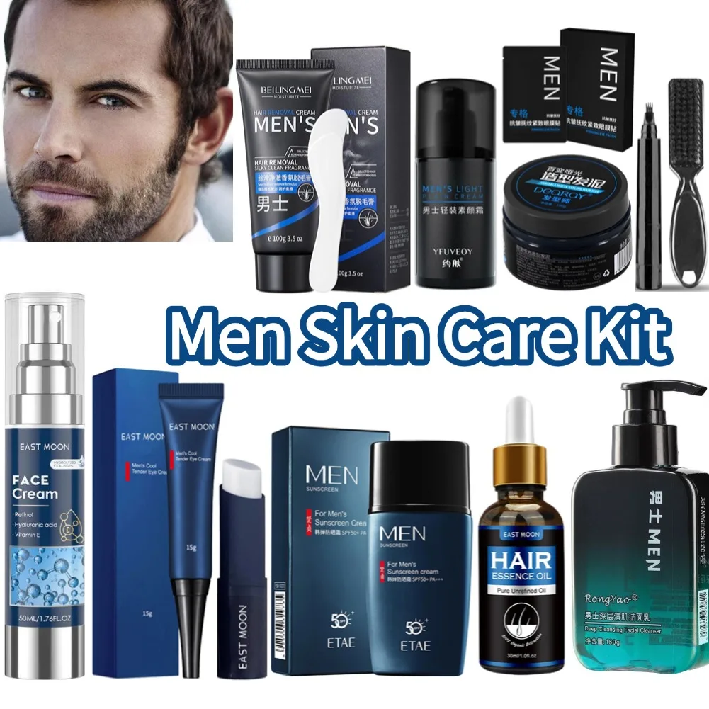 Men Skin Care Kit Men Facial Moisturizer Cream Eye Cream Facial Cleanser BB Cream Moisturizing Lip Balm Sunscreen Eye Mask Set