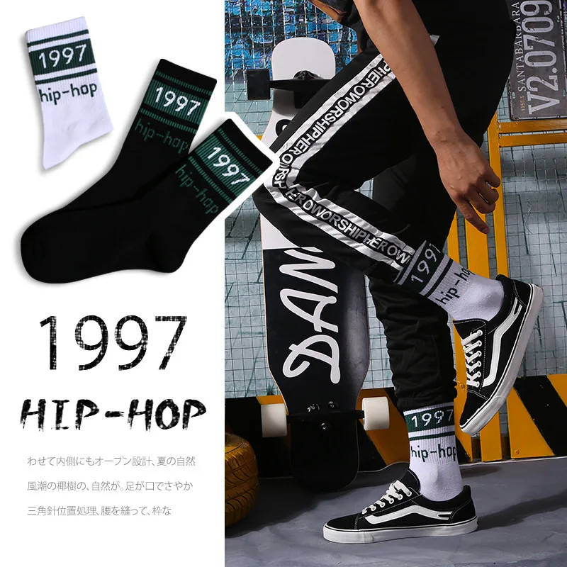 Men Socks Cotton Graphic Hip-Hop 1997 Pattern Funny Long Women Black Hot Fashion Solid Sport Street Casual Hosiery