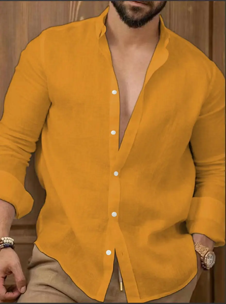 Men’s Cotton Linen Long-sleeved Shirt White Thin Spring Summer Breathable Comfortable Casual Street Basic Blouses Men