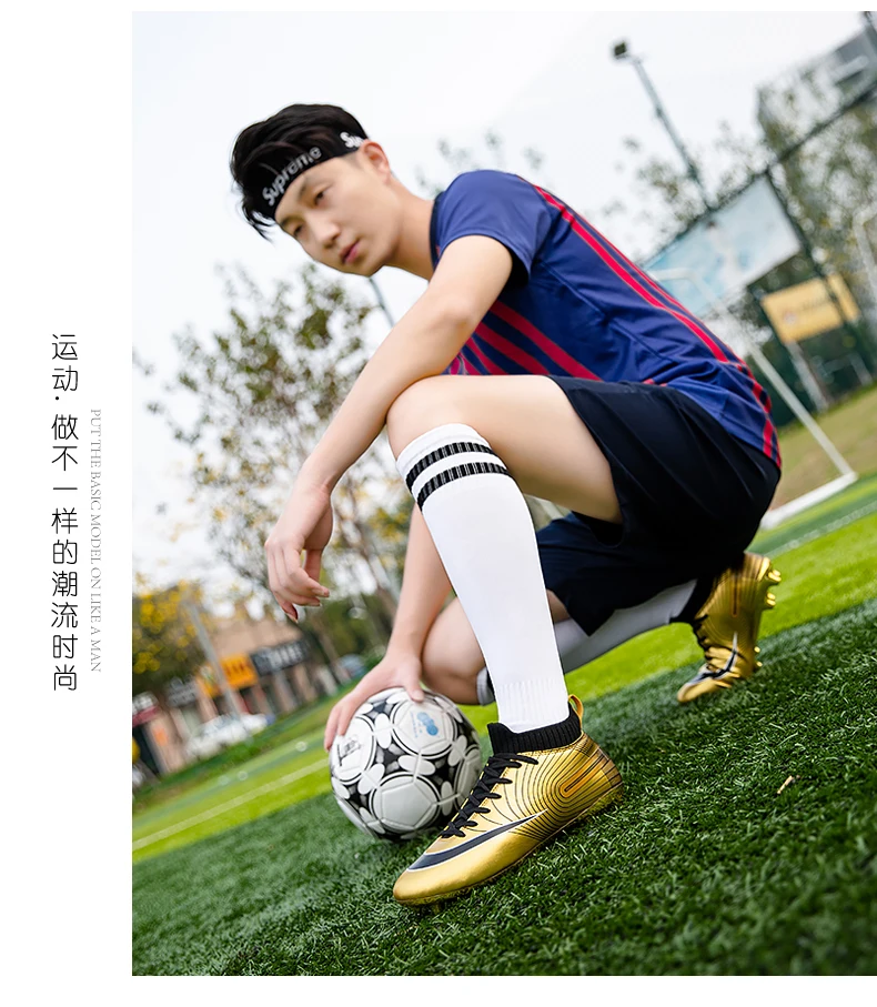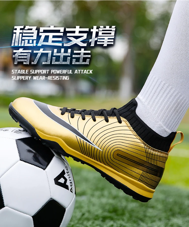 Men’s TF/AG High Quality Football Shoes Outdoor Grass Professional Football Footwear Youth Leather Flat Bottom Anti Slip Sneaker