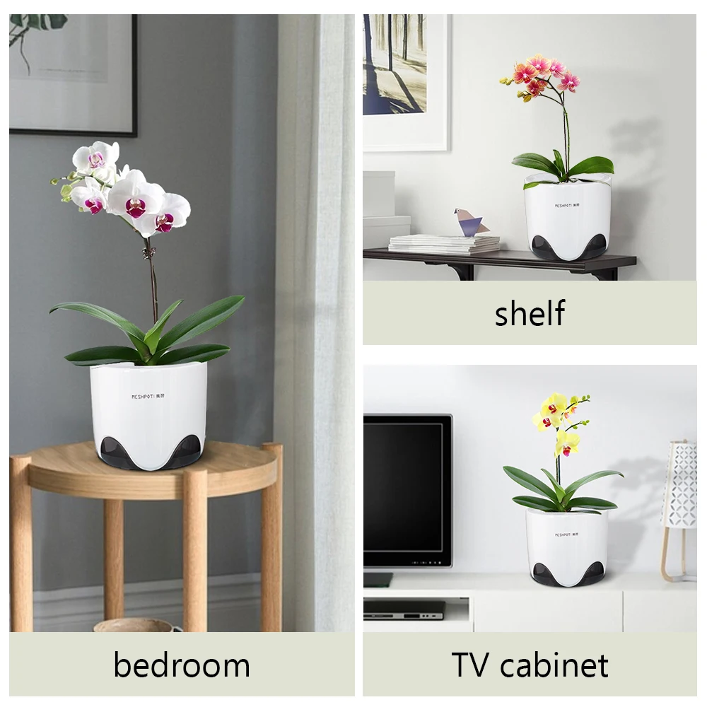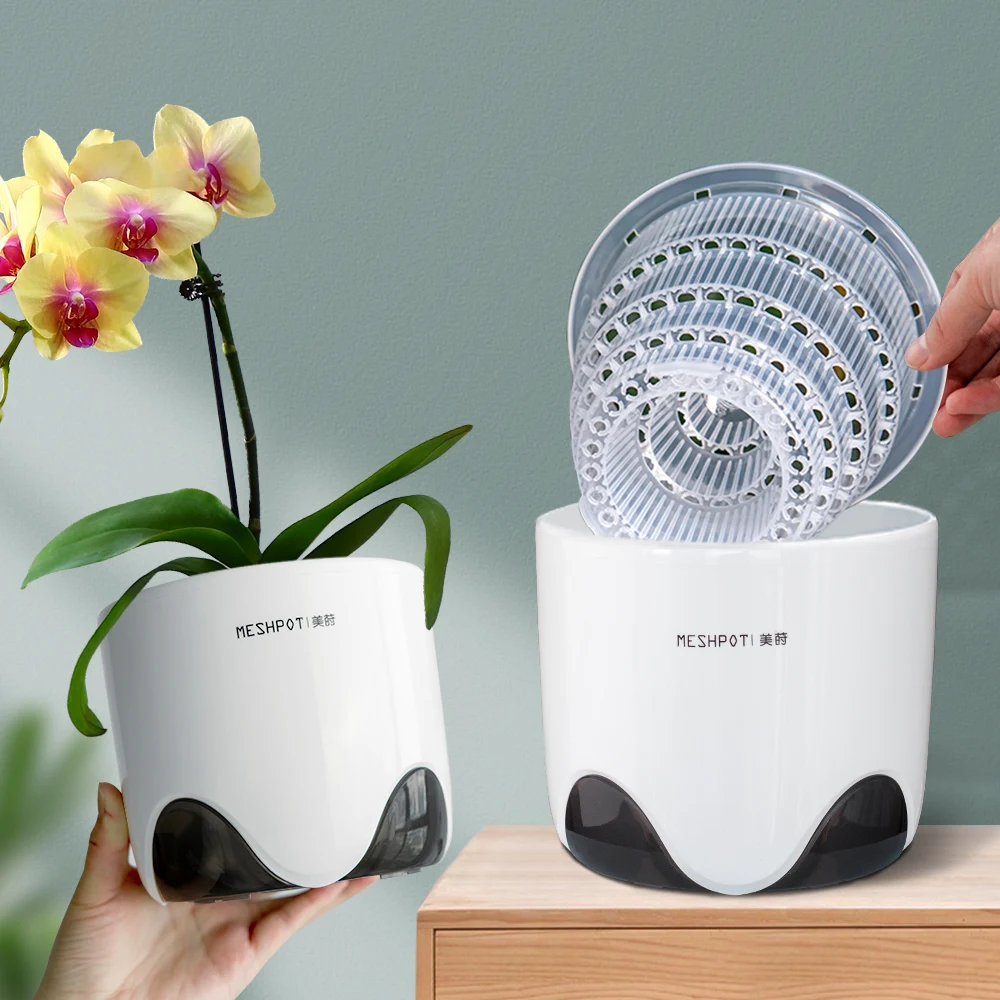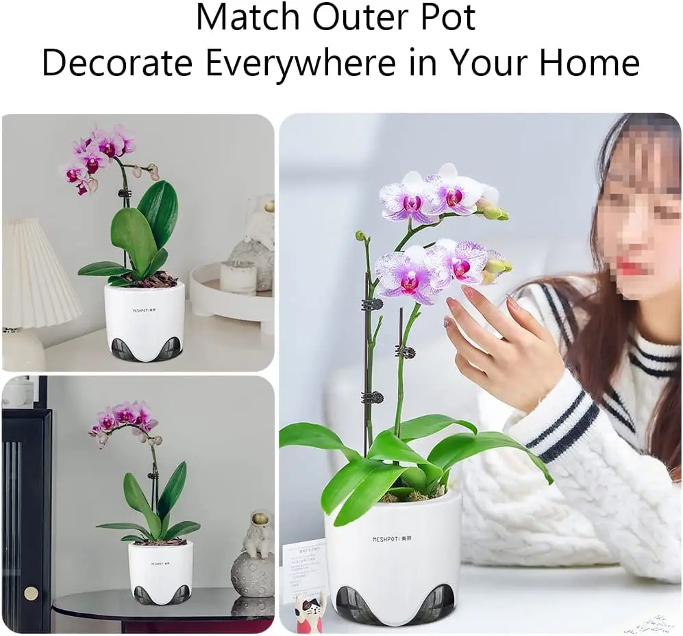 Meshpot 5inch 7inch Orchid Pots with Hole Double Layer Plastic Imitate Ceramic Orchid Planter Provide Good Air Circulation