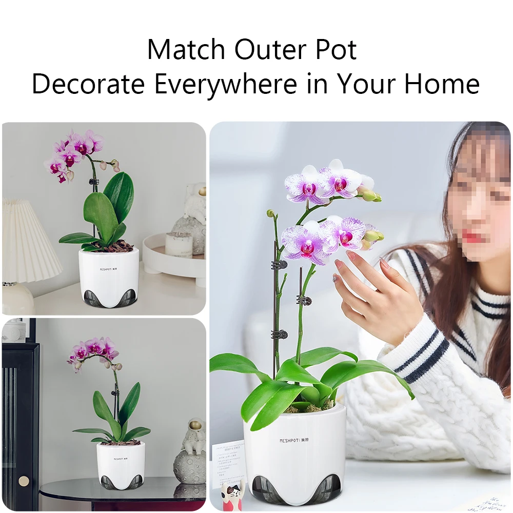 Material — food Grade PP,sturdy and last for 10 years in outdoor,especially the inner pot is made of clear plastic,is convenient to observe orchid root growth.