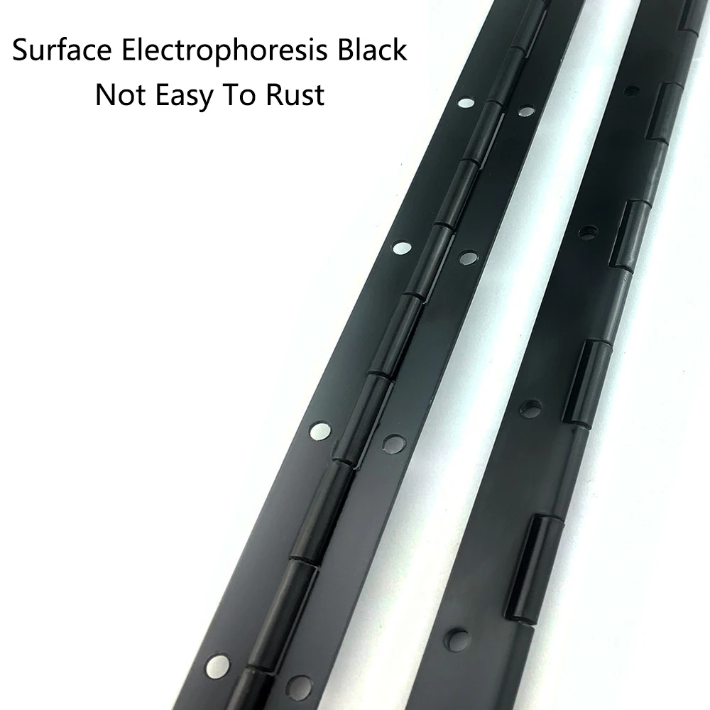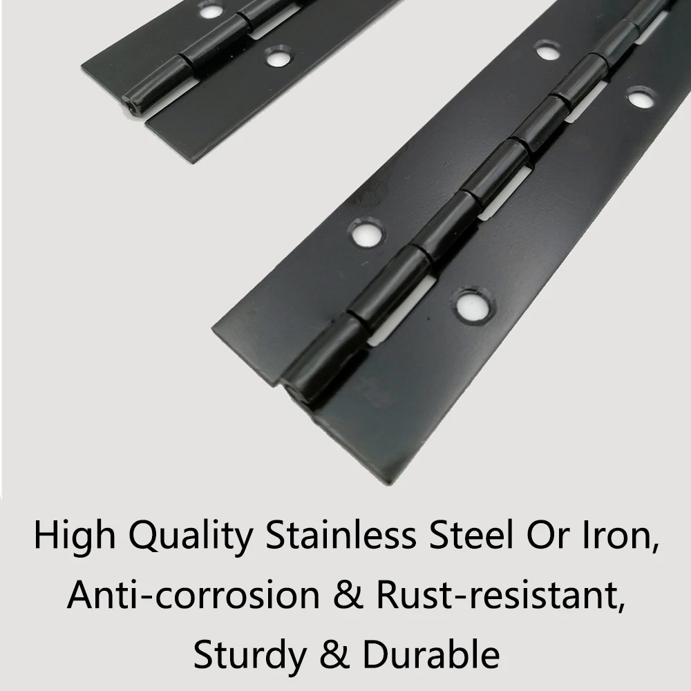 【Fine Workmanship】The 1.2inches width piano hinge has fine workmanship with flat surface & rounded corners; the appearance of color and lustre presents matte black, which is elegant and fashionable, a comfortable and smooth feel, open and close smoothly without stagnation.