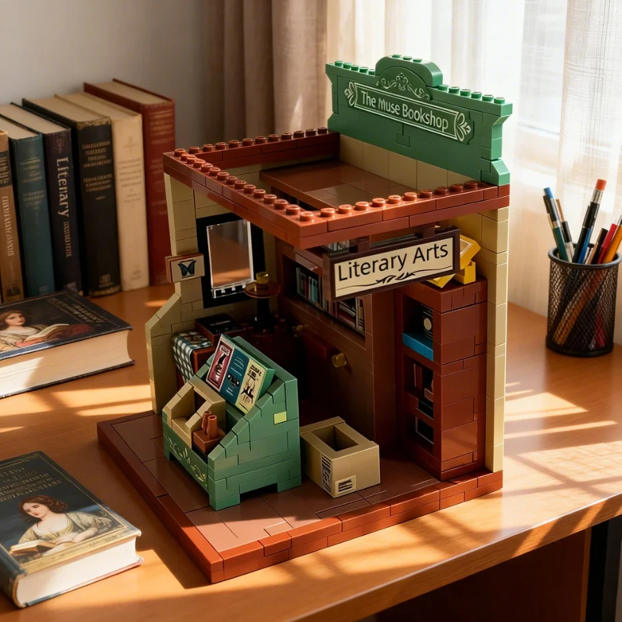 Mini Bookstore Micro Brick Building Model, Tiny Block Assembly Architecture Set for Adults, Desktop Decoration, Christmas Gift quantity