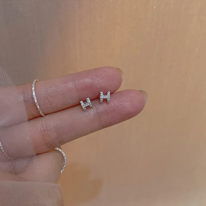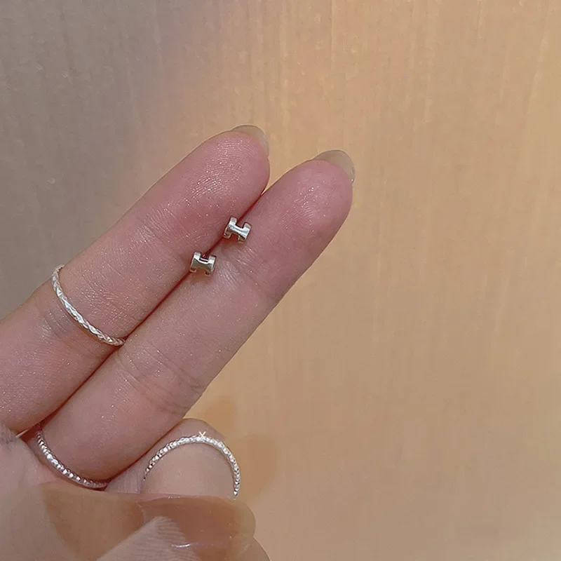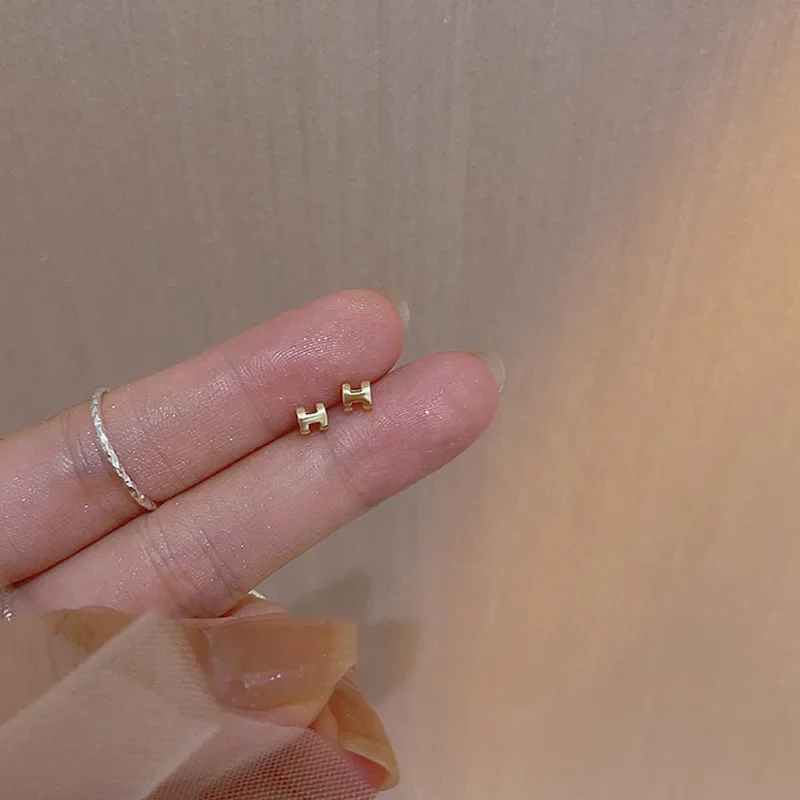 Miniature Elegant High-End Feel Versatile Women’s Earrings Simple H-Shape Small Bean-Shaped Stud Earrings
