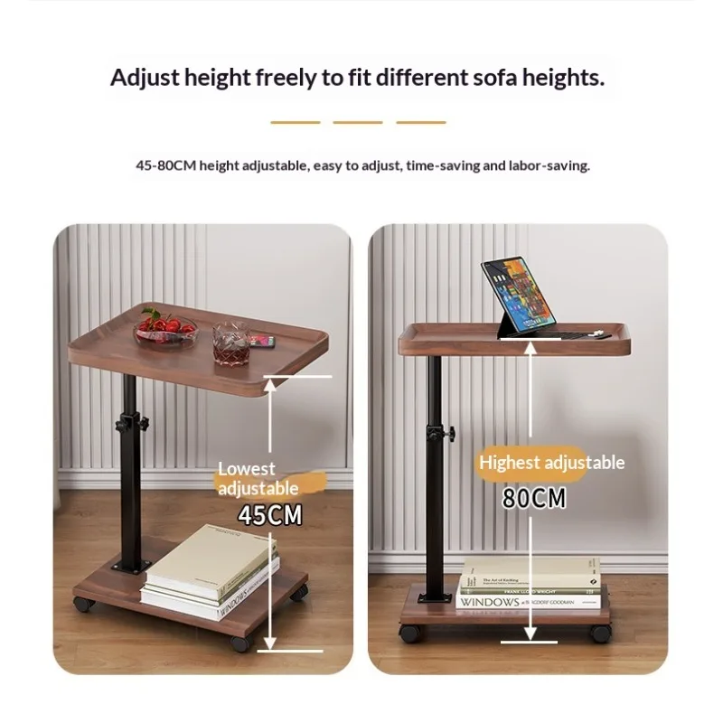 Minimalist Adjustable Height Bedside Table Nightstand Rolling Side Table Bedside Cabinet Drawer Bedroom Storage Small Cabinet
