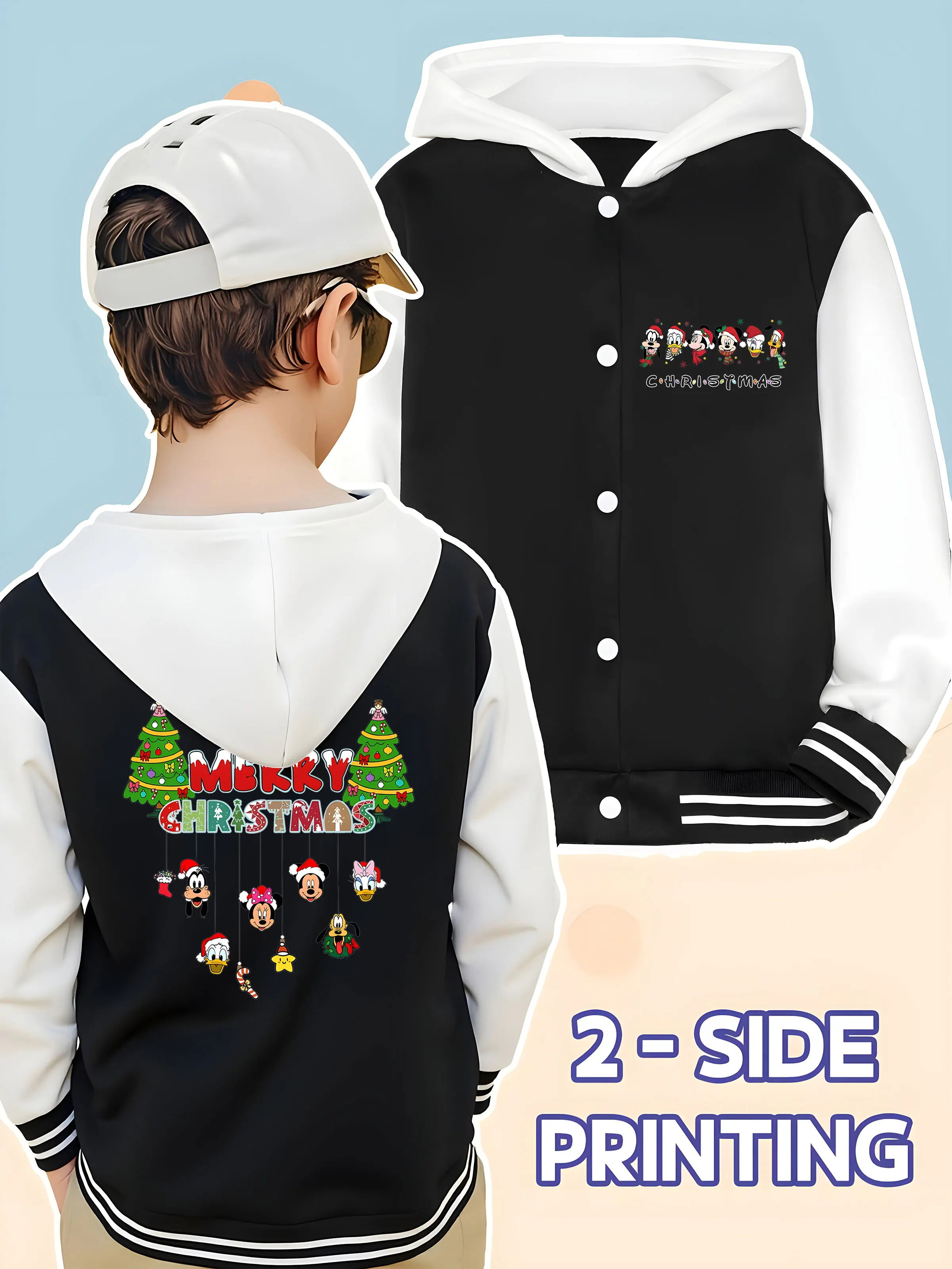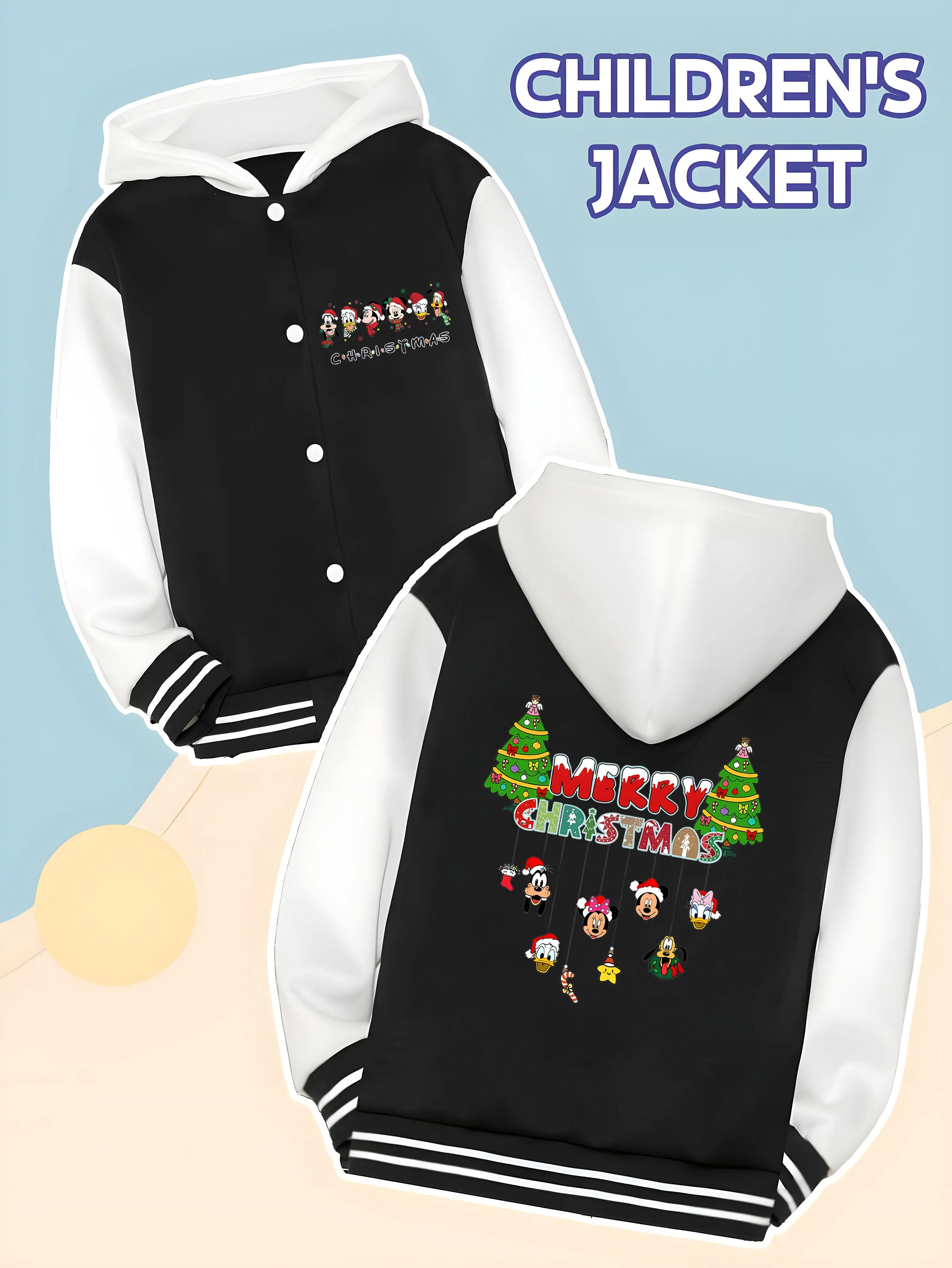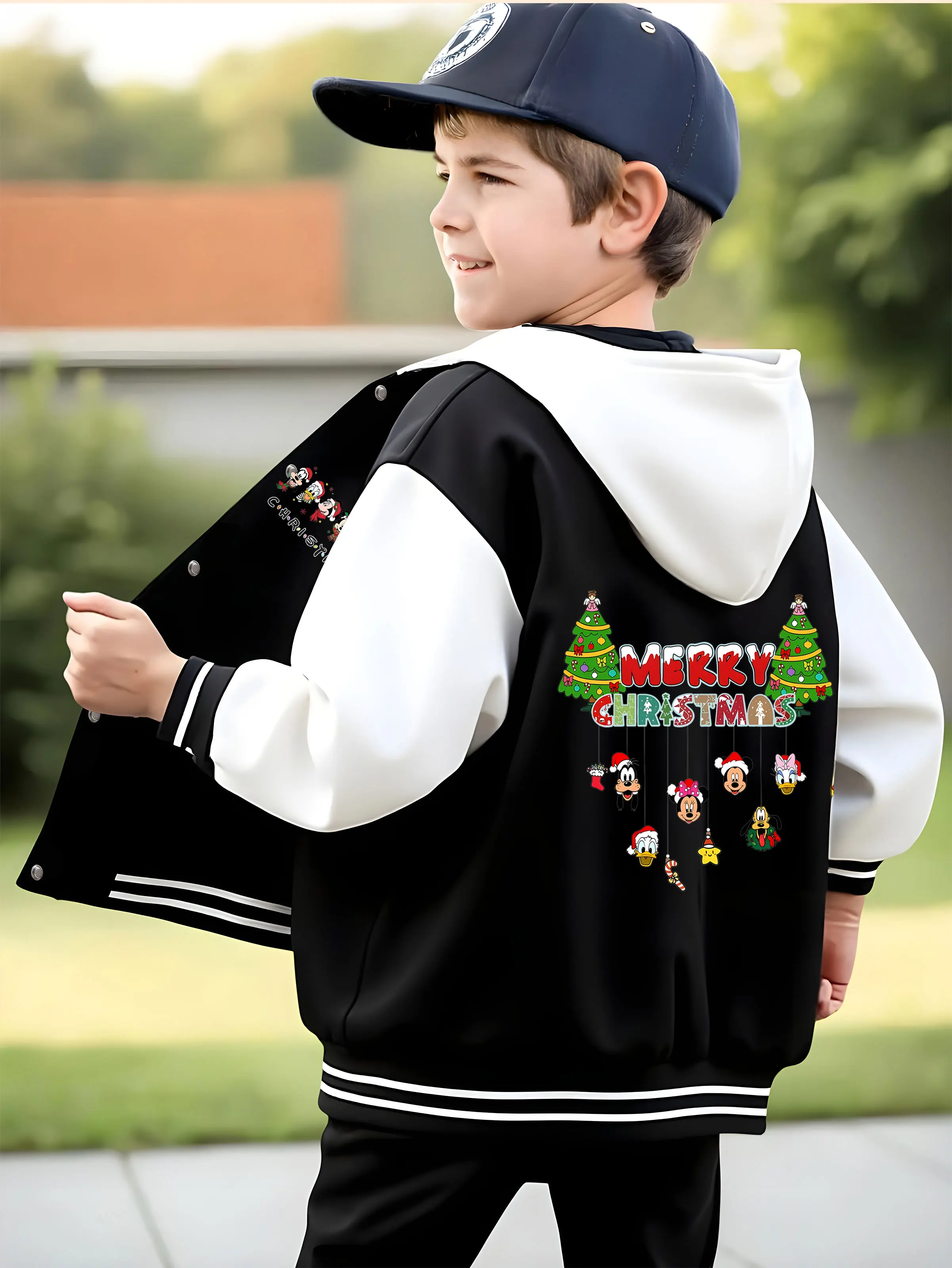 MINISO Disney Christmas themed children’s baseball jacket for boys – Mickey family Christmas, winter school wear
