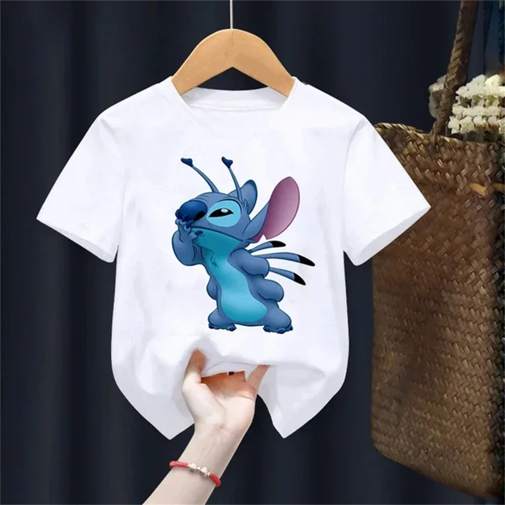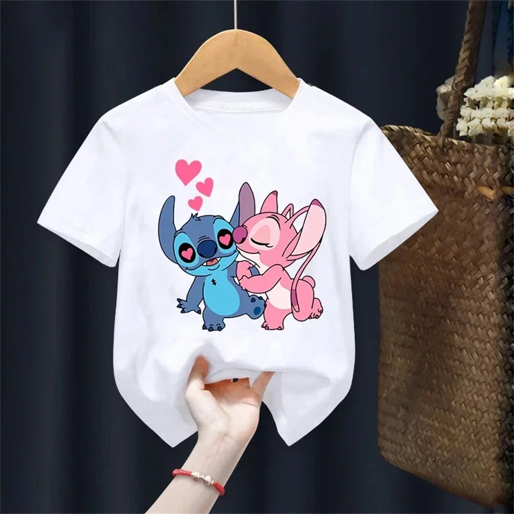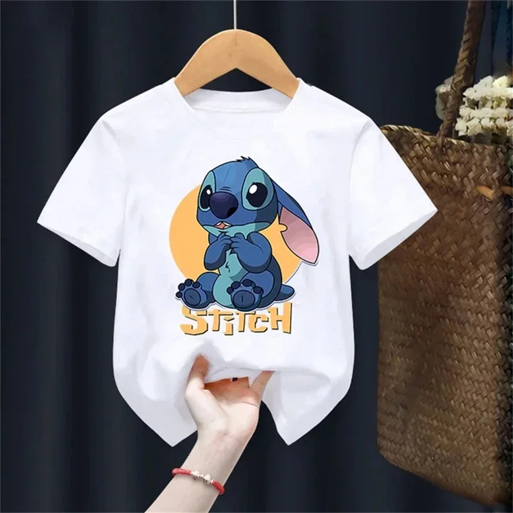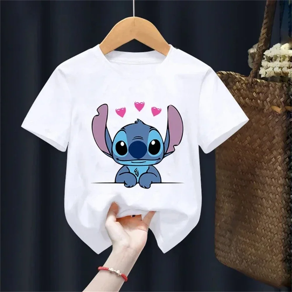 MINISO Lilo Stitch Children T-Shirt Kawaii T Shirt Anime Cartoons Children Casual Clothes Tee Shirt Kid Girl Boy Fashion Y2K Top